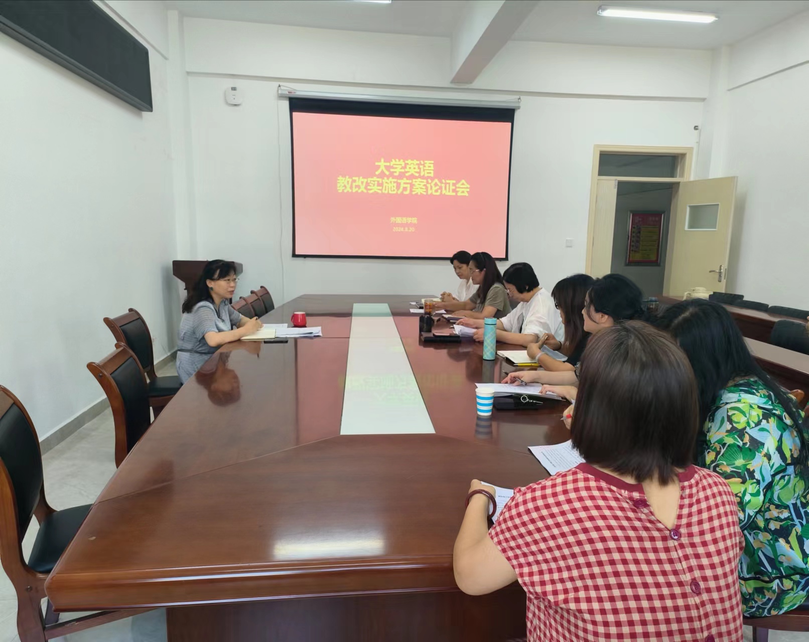 本网讯(通讯员/李康)8月20日上午,外国语学院在19号楼201 会议室召开大学英语教学改革实施方案论证会。会议由外国语学院院长赵万哲主持,外国语学院教学委员会成员和公共外语教研室主任参加。