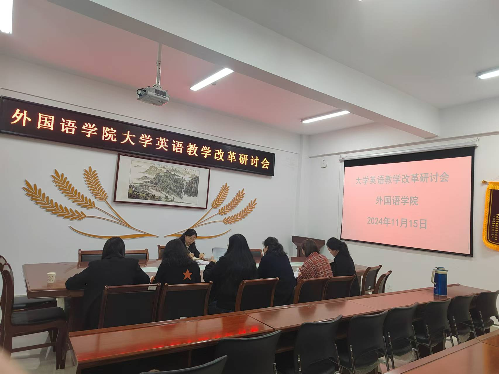 本网讯(通讯员/周小玲)为进一步提升大学英语教学质量,促进学生英语能力的全面发展,11月15日外国语学院在19201会议室召开了大学英语教学改革研讨会。本次会议由外国语学院院长赵万哲主持,教务办主任、公共外语教研室主任以及多位公共外语教研室骨干教师参会。