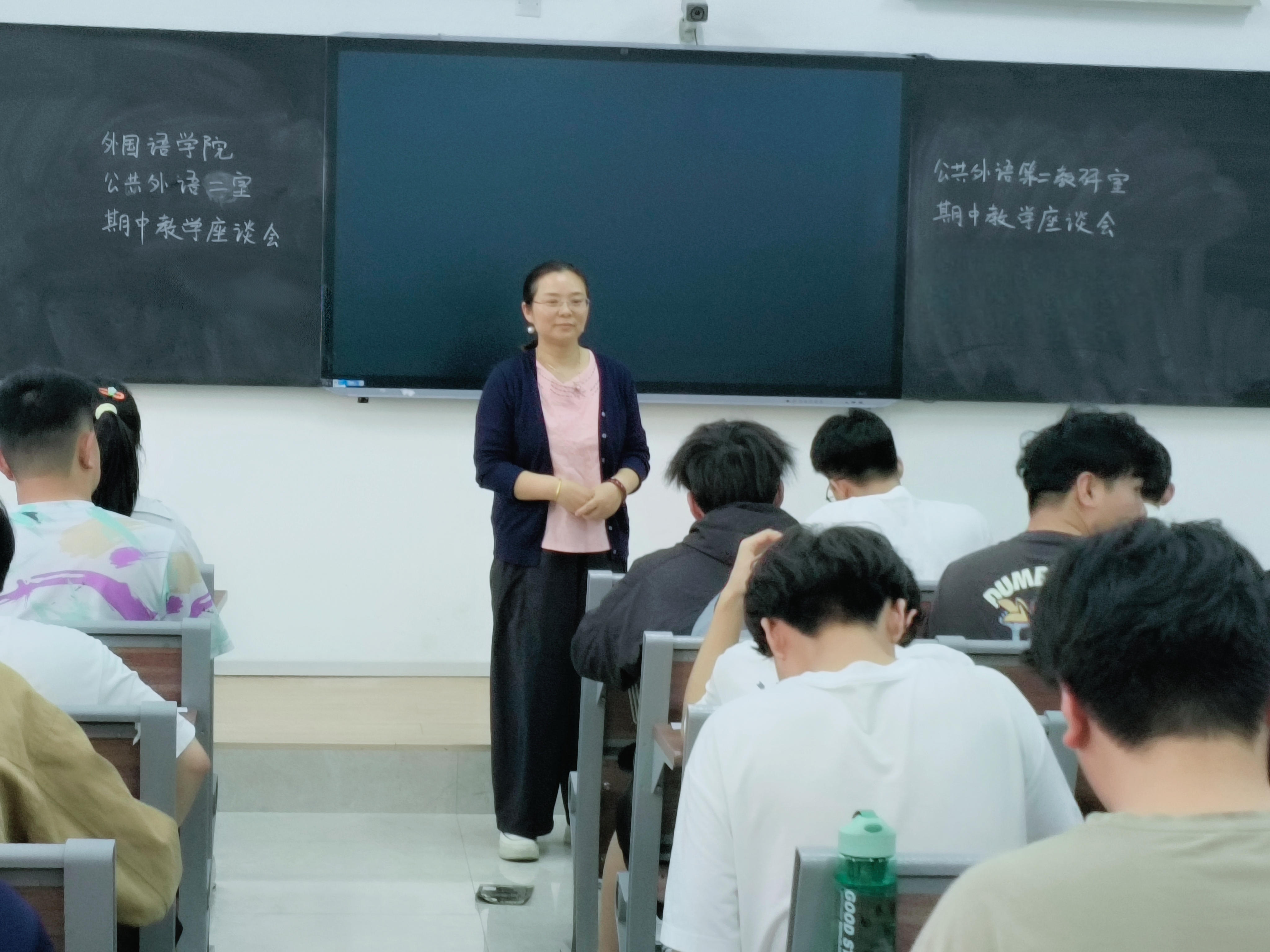 本网讯(特约记者/周新令)2025 年 4 月 21 日晚7点,外国语学院公共外语第二教研室在 19503 教室召开大学英语期中学生座谈会。此次座谈会旨在深入了解学生的学习需求与反馈,提升大学英语教学质量。教研室多名教师代表与来自全校各院系的 70 余名学生代表齐聚一堂,围绕大学英语学习展开了热烈的交流与探讨。