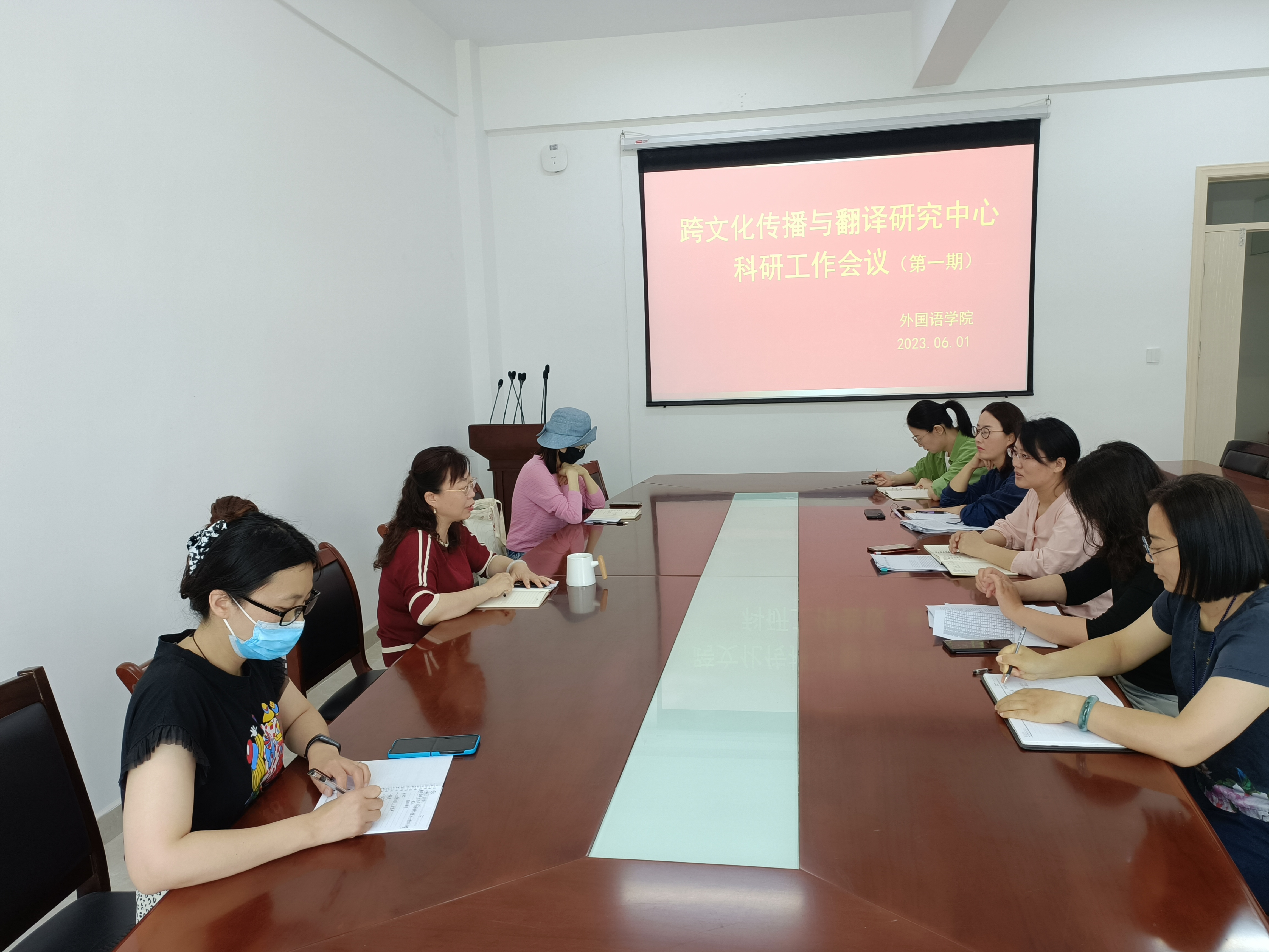 本网讯(特约记者/刘辉)2023年6月1日上午,外国语学院跨文化传播与翻译研究中心在学院会议室19201召开第一期科研工作会议。会议由研究中心负责人学院党委书记赵万哲主持,全体研究中心成员参与。