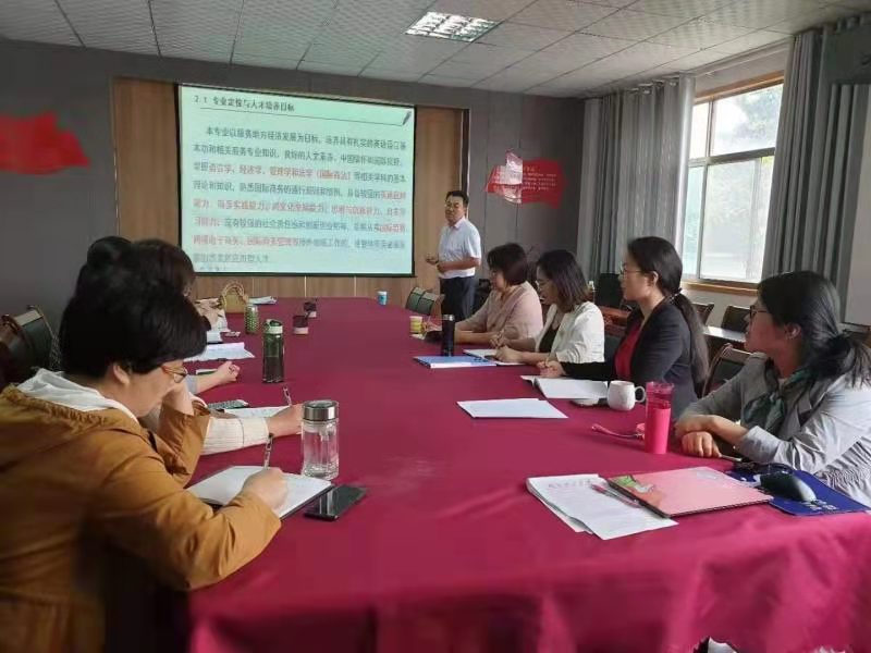 会议由包相玲副院长主持。首先赵保成副教授分享了郑州商学院建设商务英语省级一流专业的经验和具体措施、商务英语实践教学体系构建和学生电子商务能力培养的举措等宝贵经验,提出培养方案需要结合《高等学校商务英语专业本科教学质量国家标准》及学校办学目标和定位(校标)来进行科学设置,才能更好地发挥区域经济优势,体现校本特色。接下来全体教师就我校人才培养方案制订中存在的困惑和问题同赵教授进行了热烈的座谈交流。赵教授认真审阅了我院商务英语专业人才培养方案,给予了充分肯定,并从人才培养目标、课程体系设置与构建、实践教学等方面提出了建设性的指导意见。
