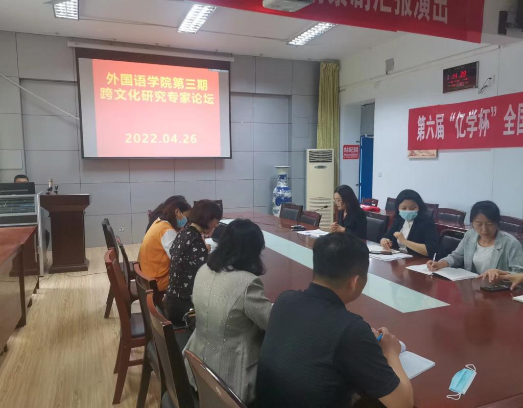 2022年4月26日下午,外国语学院于1215会议室组织召开第三期“跨文化研究专家论坛”,特邀南京师范大学外国语学院教授、博士生导师陈爱敏举行题为“国家项目:从申报到结项----以“20世纪美国都市戏剧与都市精神研究”为个案”的精彩讲座。论坛由副院长包相玲主持,外国语学院全体博士教师、华裔文学科研团队、校级科研平台“中原文化译介与传播研究中心”的全体成员以及其他对科研感兴趣的教师参加此次论坛。由于疫情原因,论坛采取线上会议形式进行。