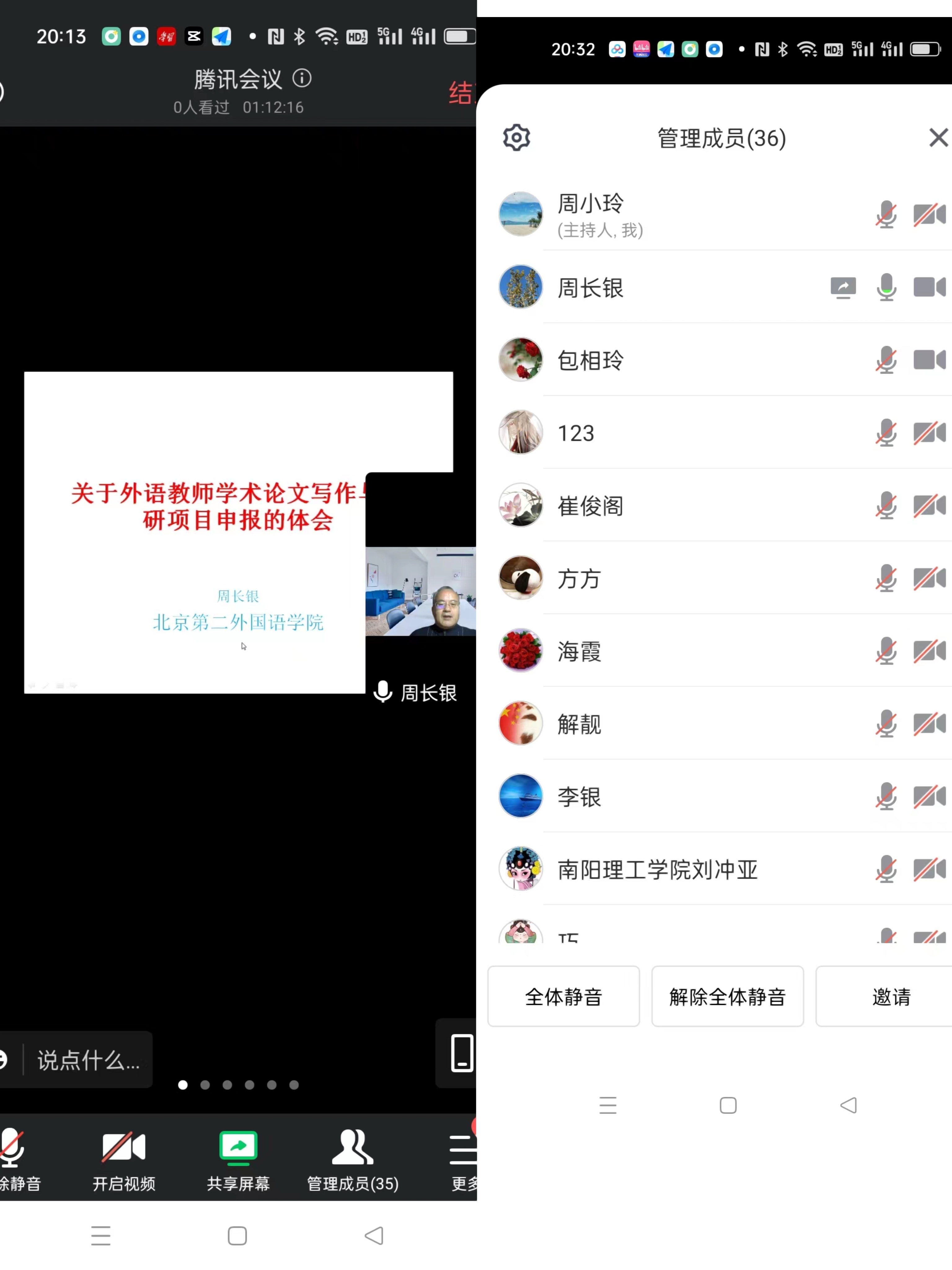 本网讯(特约记者/周小玲)2022年11月9日晚上,外国语学院、中原文化译介与传播研究中心联合召开第五期跨文化研究专家论坛,特邀北京第二外国语学院周长银教授为师生开展了一场题为“当前翻译研究的热点与发展趋势——兼谈外语教师学术论文写作与项目申报”的线上精彩讲座。讲座由副院长包相玲主持,外国语学院全体博士教师、高级职称教师、校级科研平台中原文化译介与传播研究中心主任海霞和全体成员以及其他对科研感兴趣的教师参加了此次论坛。