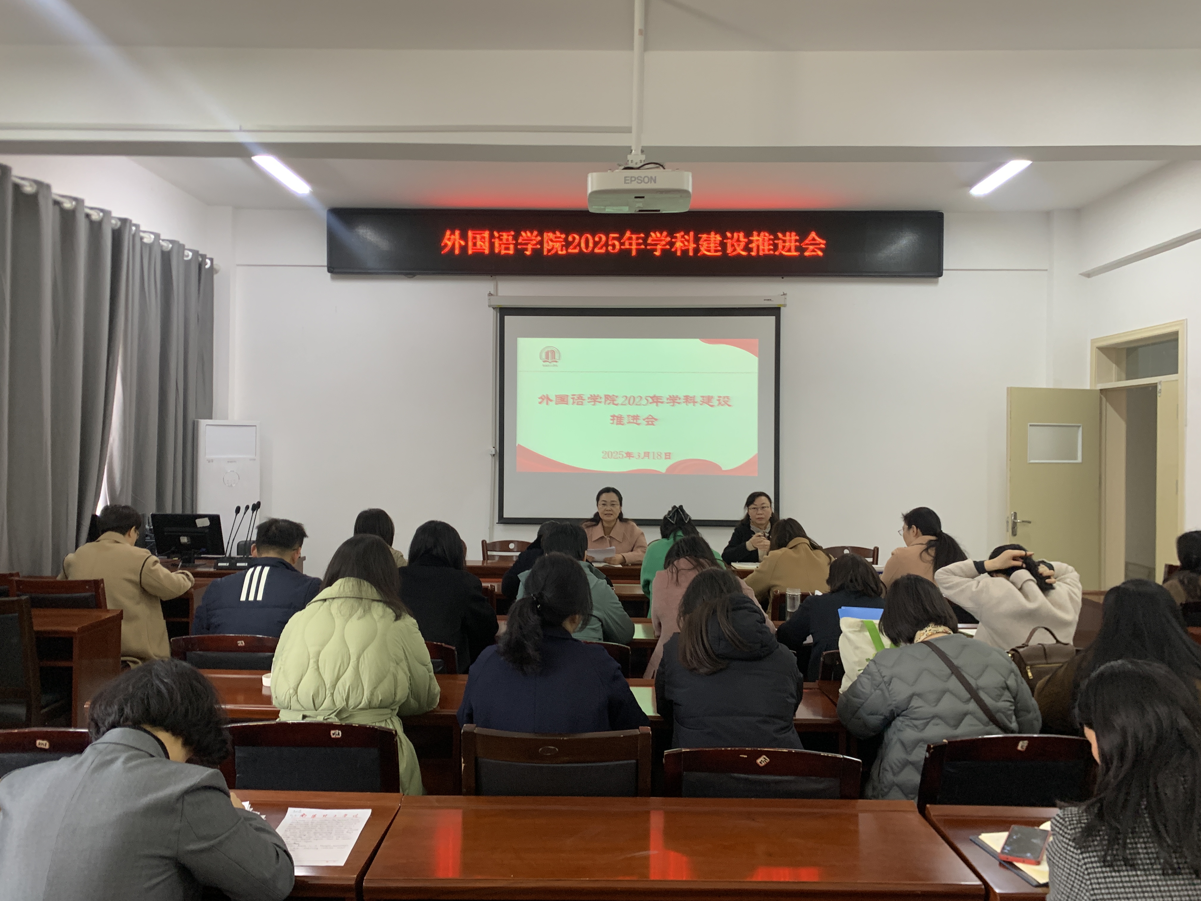 本网讯(通讯员/滕冰冰)3月18日下午,外国语学院在19202学术报告厅举办学科建设工作推进会。会议由副院长包相玲主持,出席本次会议的有院长赵万哲、全体博士及副教授。