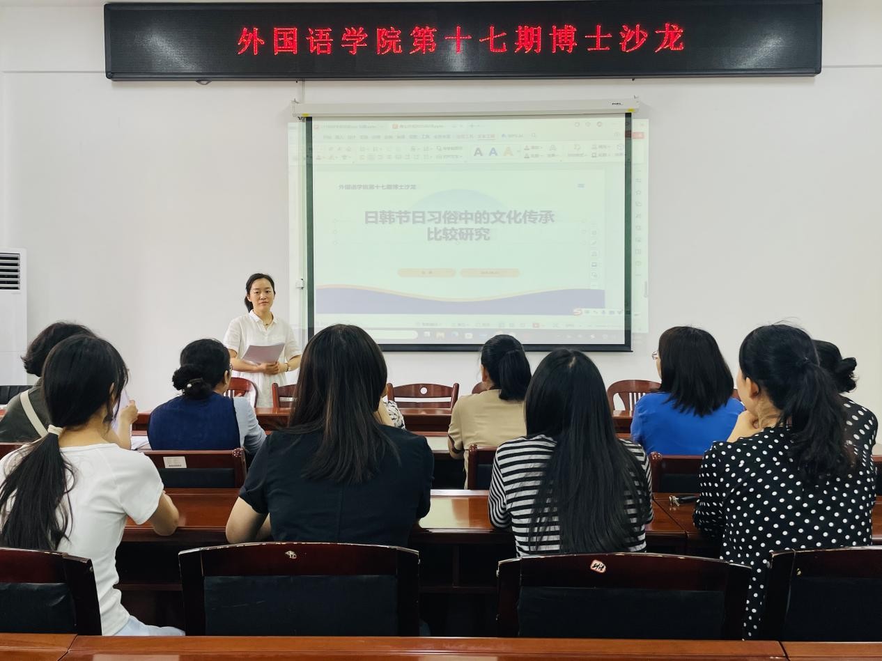本网讯(通讯员/滕冰冰)6月10日下午,外国语学院举办第十七期主题为“日韩节日习俗中的文化传承比较研究”的博士沙龙活动,主讲人为学院张莉博士。