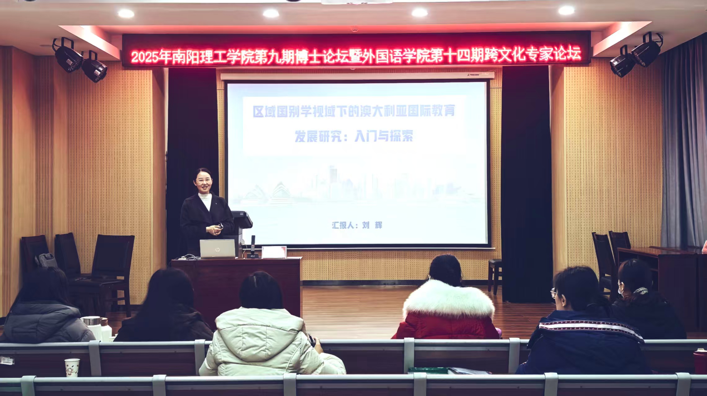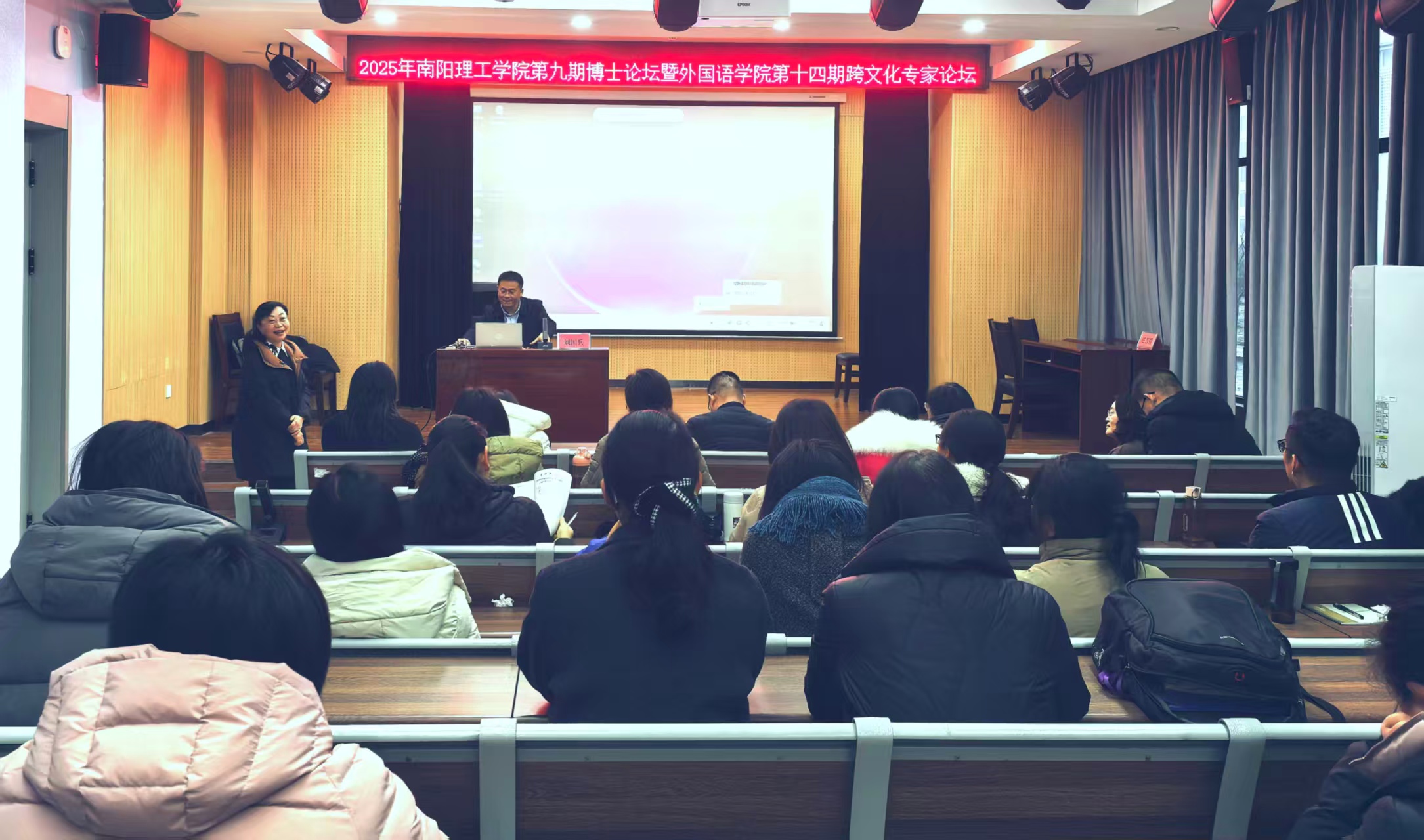 本网讯(通讯员/滕冰冰)12月12日,南阳理工学院第九期博士论坛在外国语学院成功举办。本次论坛由我校科研管理处主办,外国语学院承办。论坛以“人工智能如何赋能外语教师成长”“区域国别学视域下的澳大利亚研究:入门分享与探索交流”为题目展开,与外国语学院第十四期“跨文化研究专家讲座”合并进行。论坛由外国语学院副院长包相玲主持。