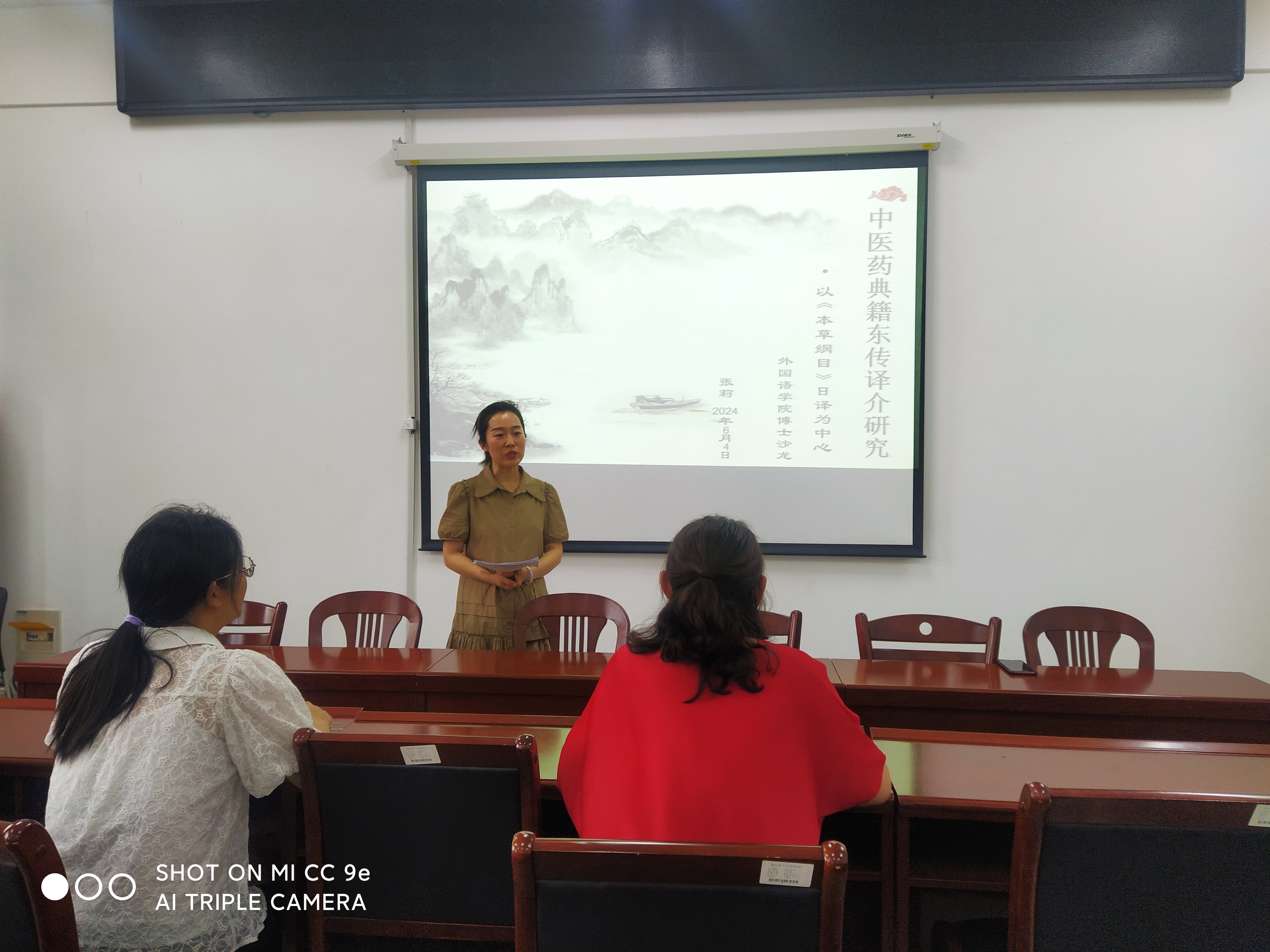 本网讯(通讯员/张莉)2024年6月4日,外国语学院第十一期博士沙龙在19202学术报告厅如期举行。本次活动由外国语学院张莉博士主讲,主题为“中医药典籍东传译介研究一以《本草纲目》日译为中心一”。