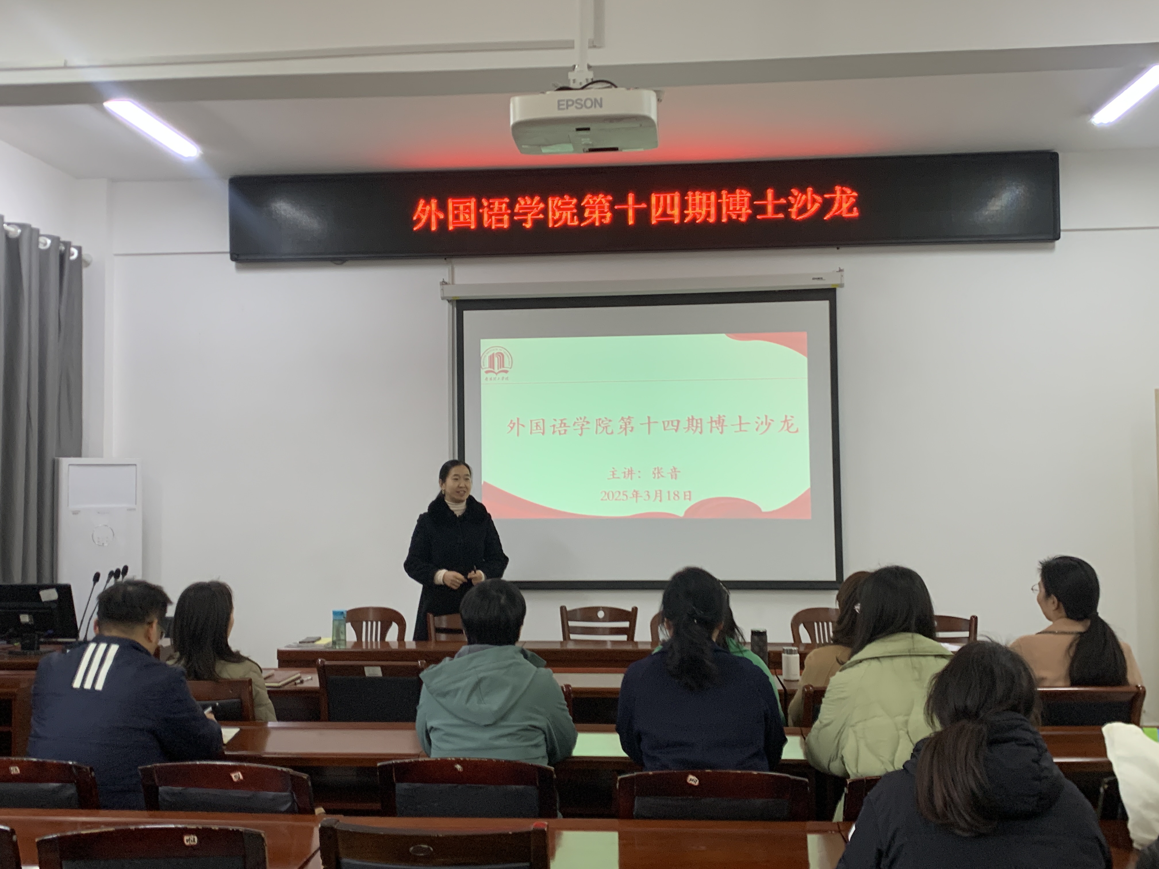 本网讯(通讯员/滕冰冰)3月18日下午,外国语学院举办第十四期博士沙龙。学院张音博士担任主讲人,众多师生积极参与。
