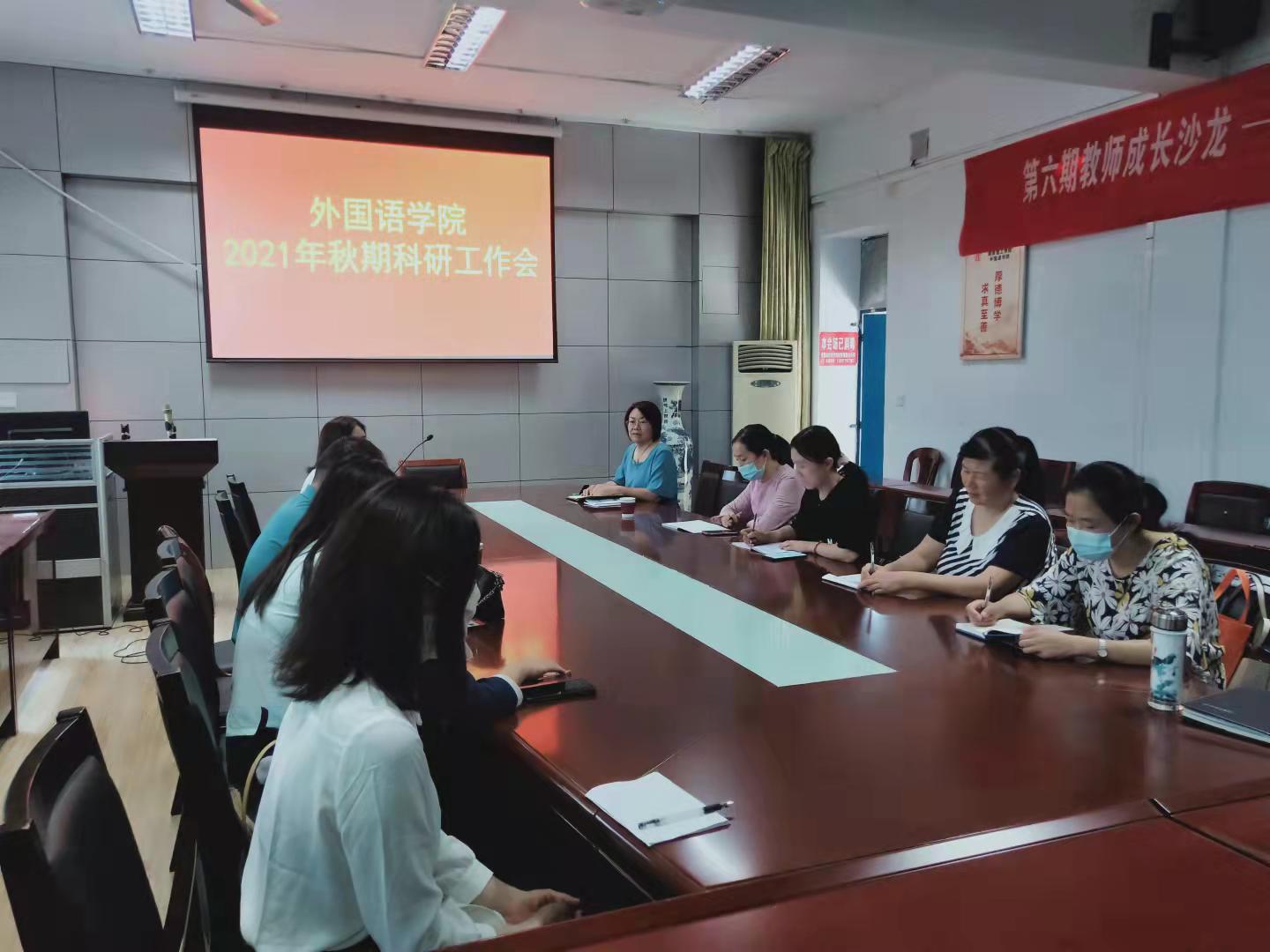 2021年9月14日下午,外国语学院在会议室1215召开2021年秋期科研工作会议。会议由包相玲副院长主持,外国语学院海霞院长做重要发言。
