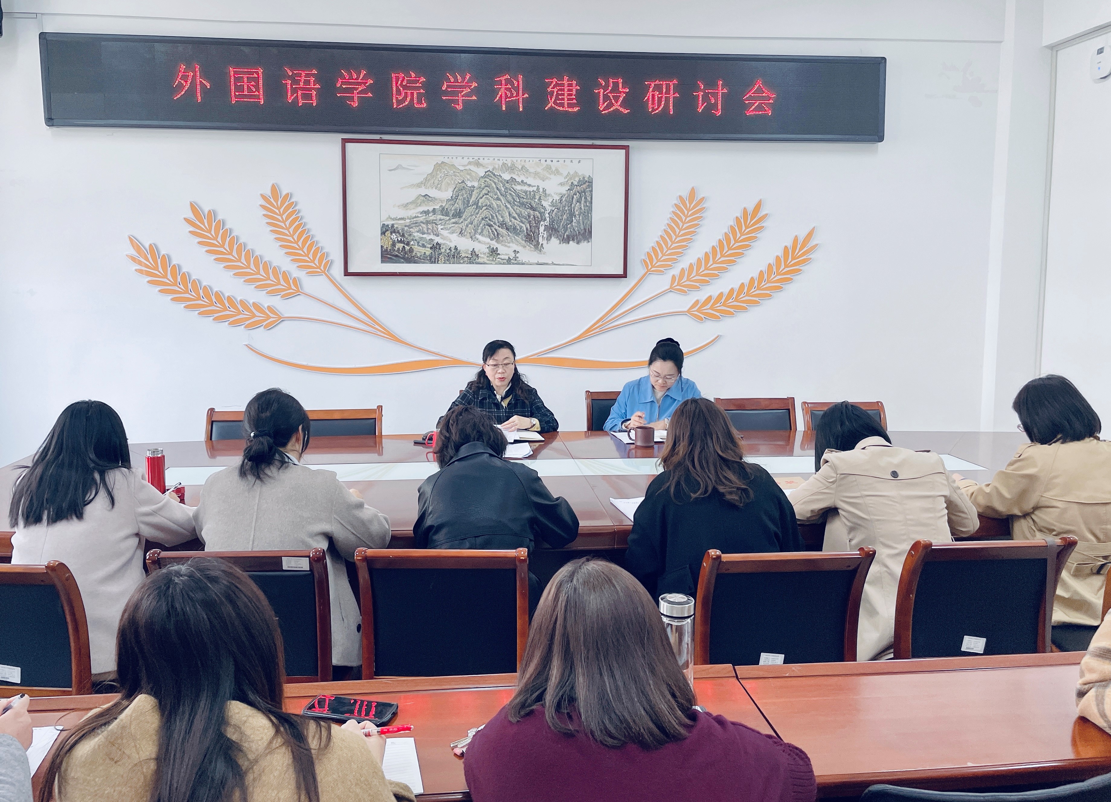 本网讯(通讯员/滕冰冰)4月3日下午,外国语学院在19201会议室召开2025年度学科建设研讨会。会议由院长赵万哲主持,出席本次会议的有副院长包相玲、各教研室主任及骨干教师。