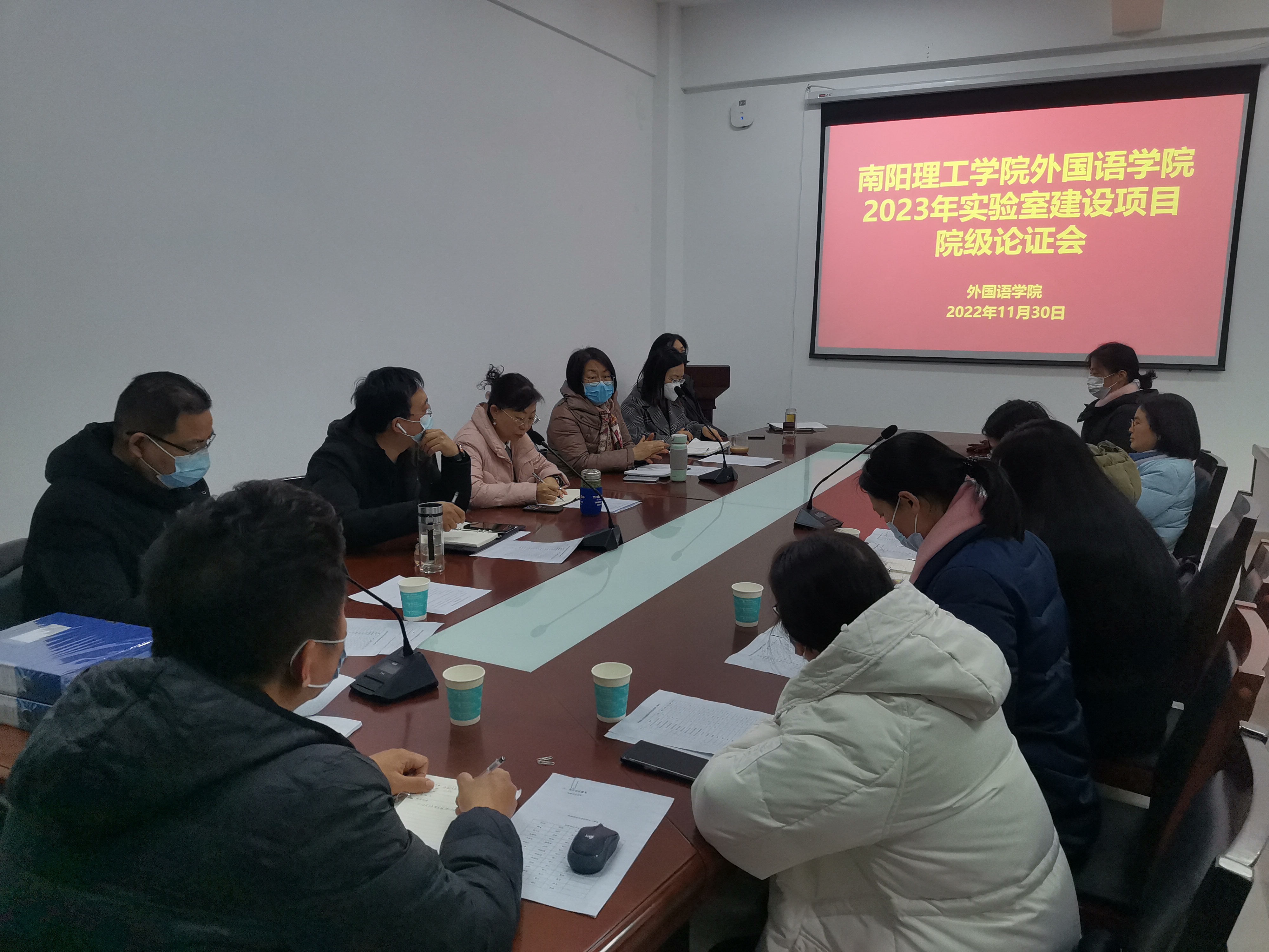 本网讯(特约记者/陈鹏)11月30日下午,外国语学院在19号教学楼201会议室召开2023年度实验室建设项目院级论证会。会议由外国语学院院长暨专家组组长海霞教授主持,外国语学院院级论证专家组全体成员出席了会议。