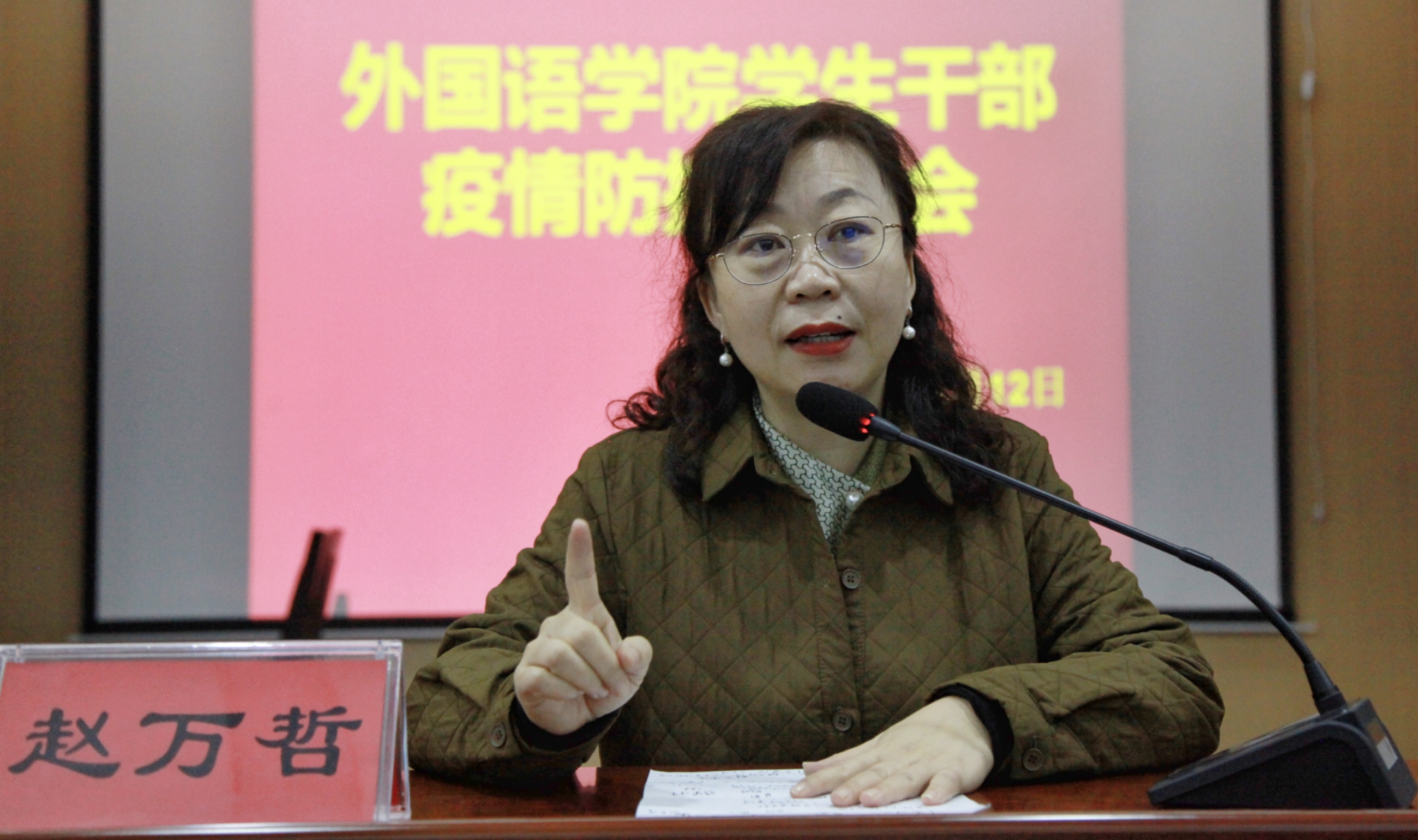 本网讯(通讯员/肖炎)11月12日上午,外国语学院于19号教学楼105室召开学生干部疫情防控工作会。本次会议由外国语学院党委书记赵万哲主持,外国语学院主要学生干部参加。