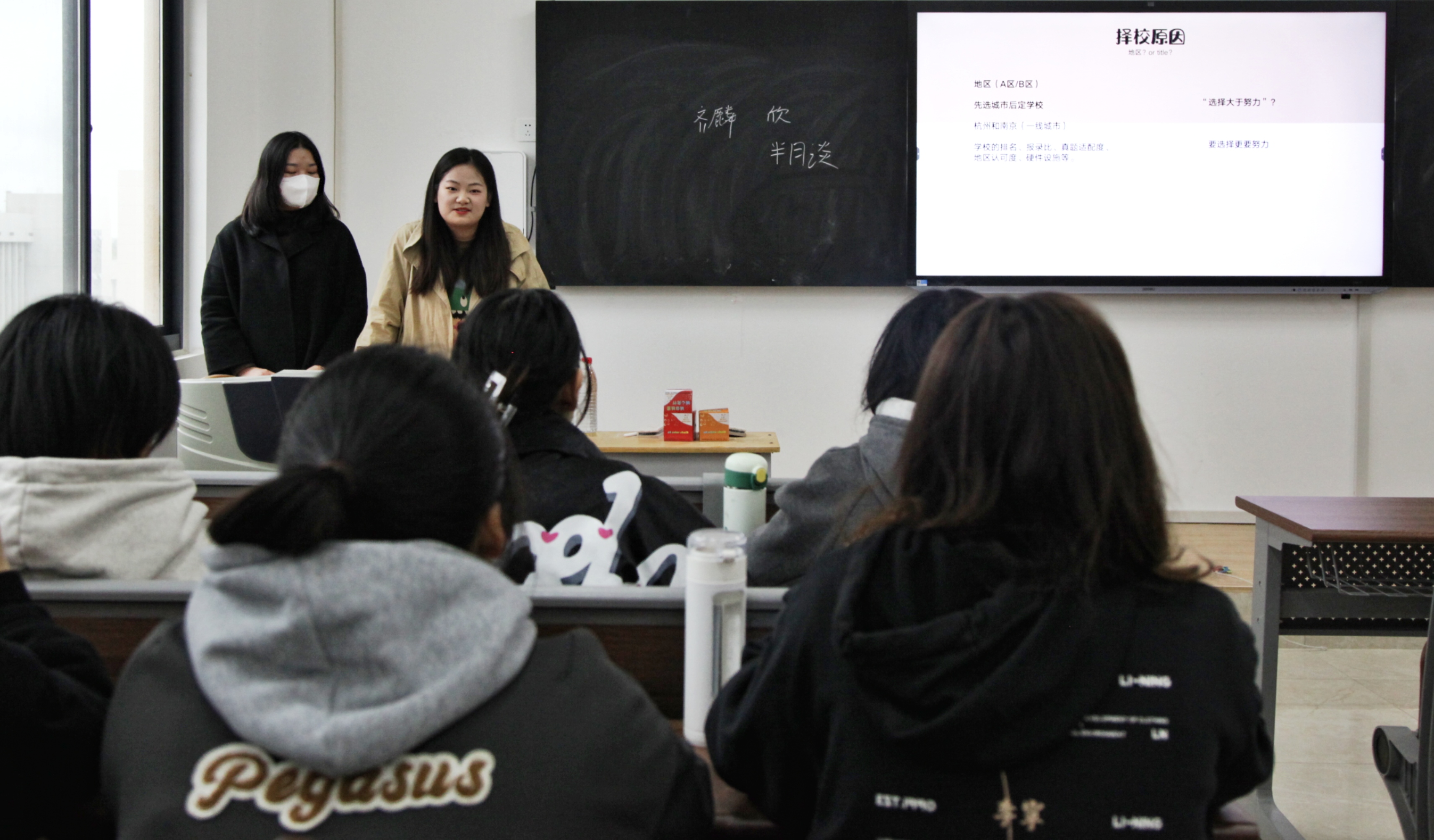 讲座伊始,周怡简单分享了自己的考研经验,并结合个人经历,建议同学们从学校的硬件设施、地区认可度、学校排名及学校的报录比等方面选择报考院校。随后,周怡为同学们讲述自己的备考策略,她强调备考过程中时间管理的重要性,建议同学们要充分利用碎片时间,合理规划复习时间,并就政治和英语两门学科给同学们提出合理建议。接着,刘雪雅为同学们系统介绍了跨专业考研的注意事项及跨考规定和调剂细则等,着重强调在复试过程中同学们应注意的问题,提醒同学们要打破信息差,多关注各类官网信息。同时她提醒同学们要注意劳逸结合,保持平常心,避免因外界干扰产生焦虑,并预祝同学们取得良好成绩,成功上岸。