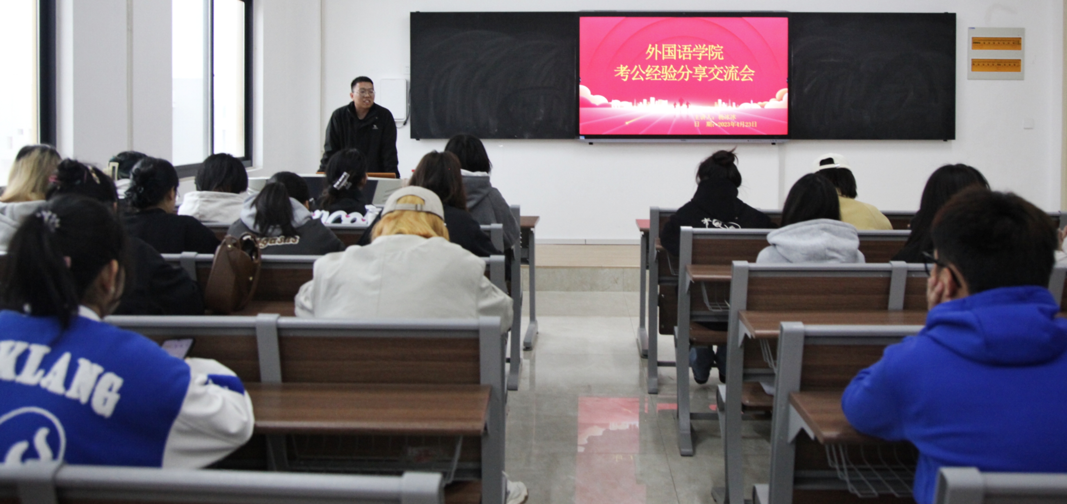 本网讯(通讯员/周迪)为进一步帮助学生了解考公信息,明确学习目标,4月23日,外国语学院于19号教学楼501室开展考公经验分享讲座,本次讲座由18级毕业生杨冰冰主讲,外国语学院学生积极参加。