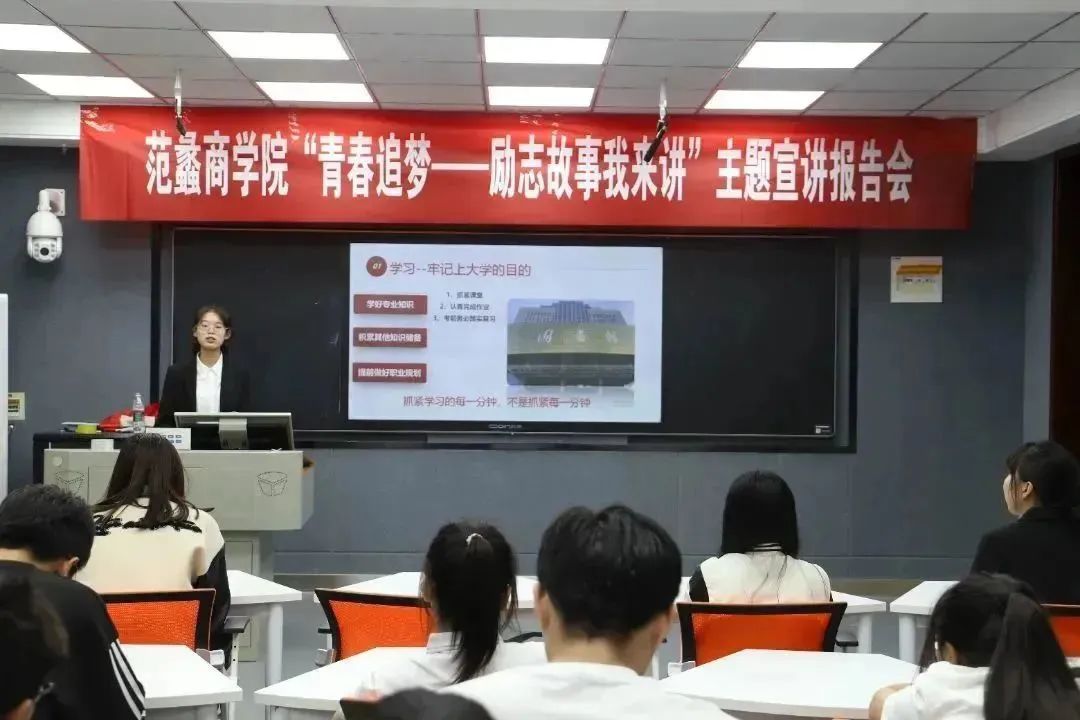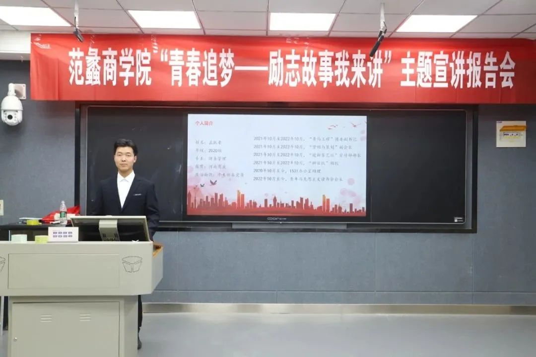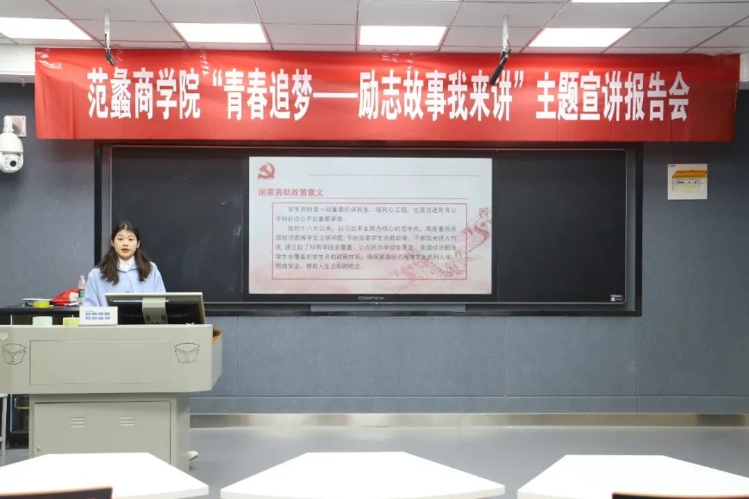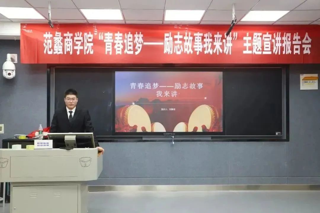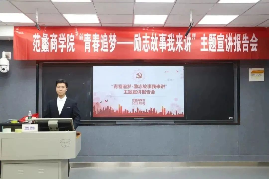 为深入开展学习贯彻习近平新时代中国特色社会主义思想主题教育,加强对广大青年的思想引领,充分发挥示范引领作用,有效推进优良学风建设,激励广大青年学生踔厉奋发,不负韶华,深化资助育人成效,形成争先创优的良好氛围,5月25日晚,范蠡商学院举办“青春追梦——励志故事我来讲”主题宣讲报告会。