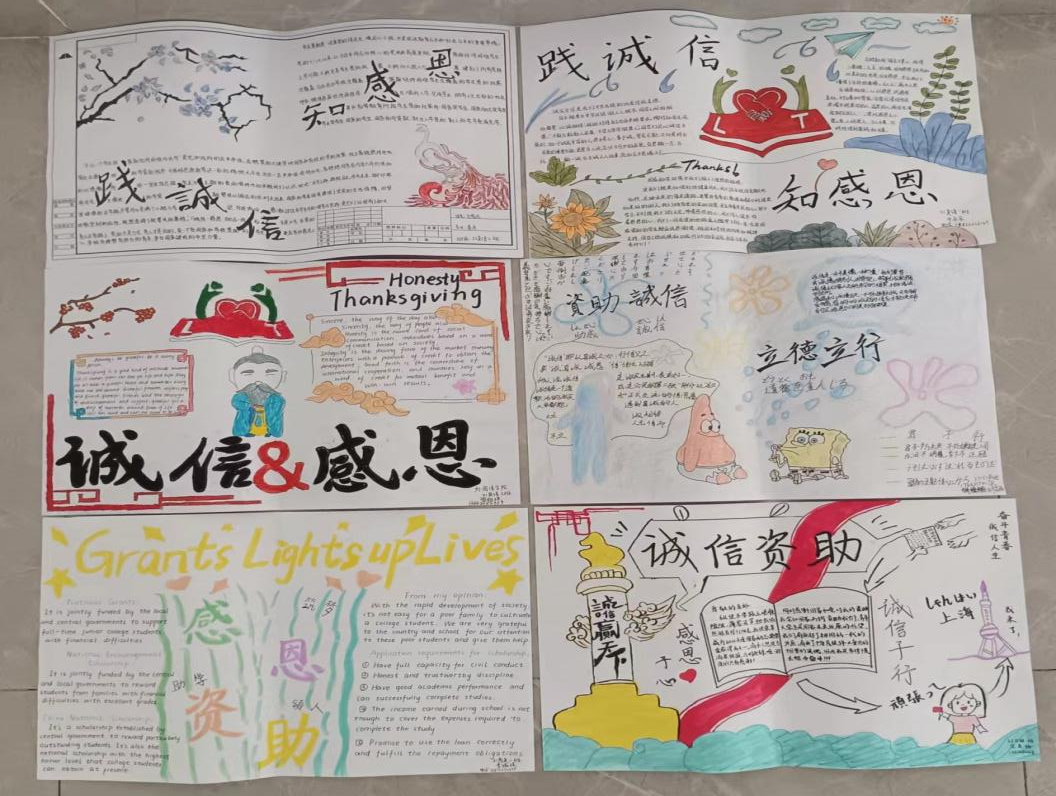 为弘扬新时代中国特色社会主义核心价值观,加强学生资助政策宣传和诚信教育,普及学生资助知识,强化大学生对国家资助政策和诚信感恩的认识和理解,增强学生社会责任感,推动学生资助工作持续健康发展,强化资助工作育人成效,外国语学院结合学科专业特色,开展以“践诚信,知感恩”为主题的资助宣传手抄报大赛。
