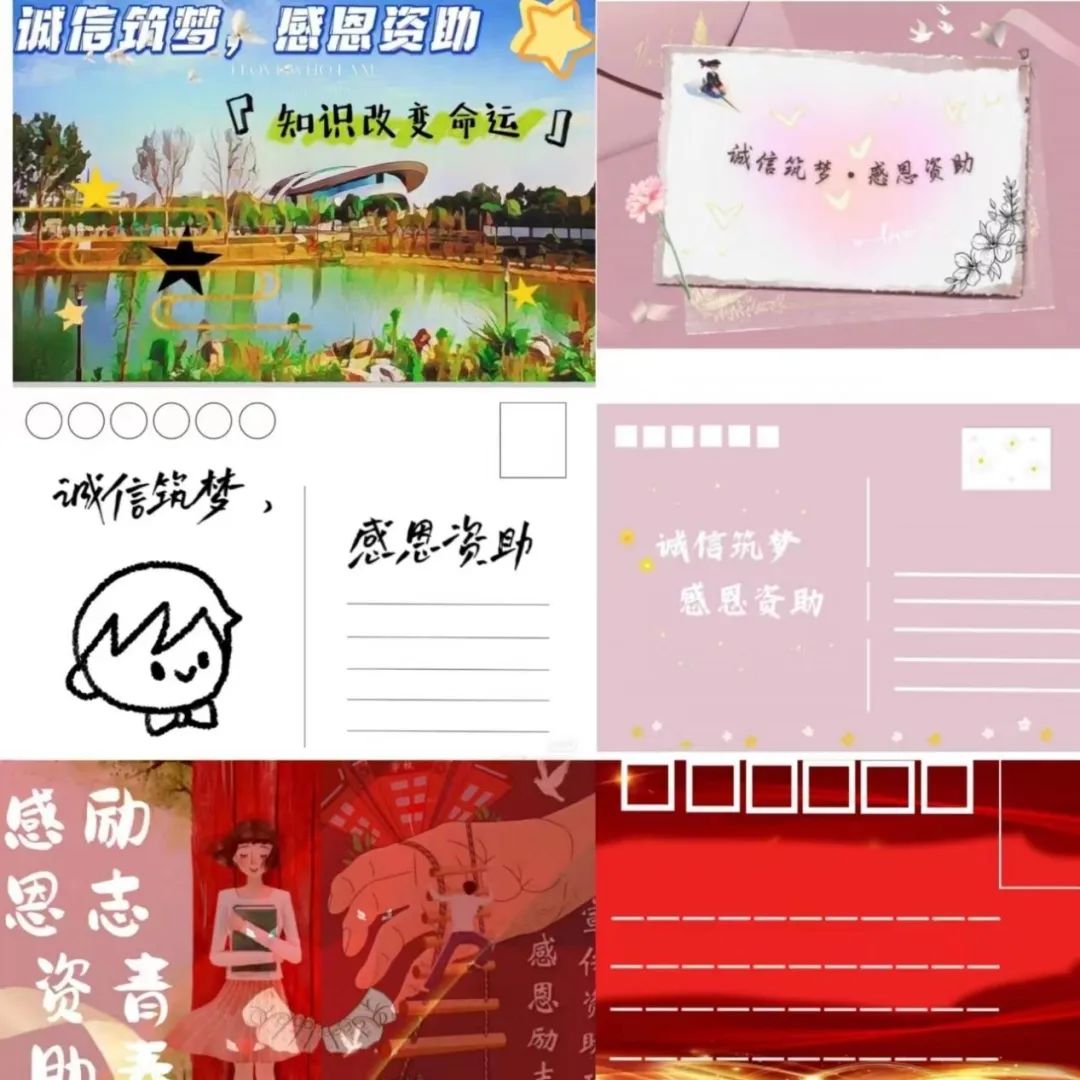 比赛期间,同学们的积极参加,通过明信片设计展现了对国家资助政策的深刻理解。参赛的作品,内容丰富,形式多样,画面主题鲜明,充分表达了广大学子感恩祖国、社会、学校的深厚感情。最后,经评委评选,陈怡含荣获一等奖,张晓杰、张玉靖荣获二等奖,黄舒琪、孟雨倩、庾娅萱荣获三等奖。