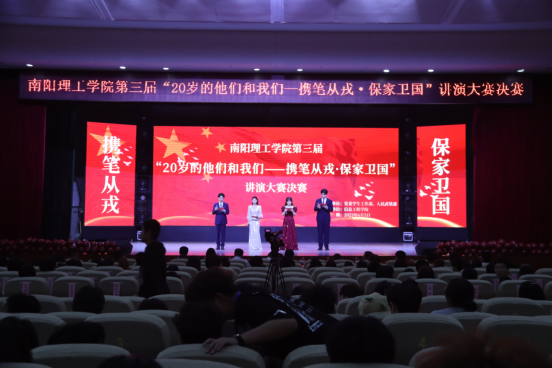 为鼓励我校青年学子积极响应祖国召唤,踊跃报名参军,6月5日晚,我校于毕业大厅举办第三届“20岁的他们和我们—携笔从戎·保家卫国”讲演大赛决赛。校团委书记郭兴华出席活动,党委组织部、党委学生工作部、人民武装部、心理健康教育中心以及各学院主要负责人参加,800多名观众观看比赛。