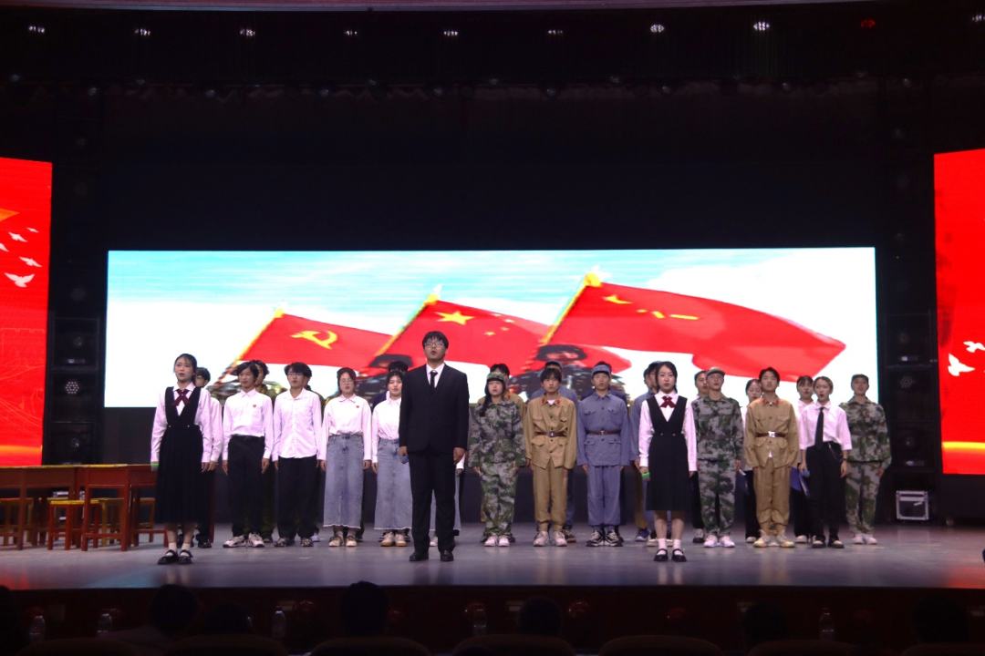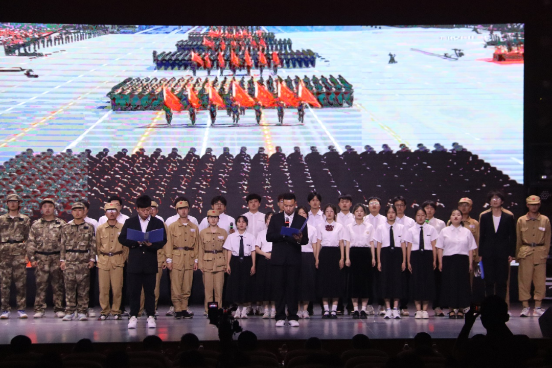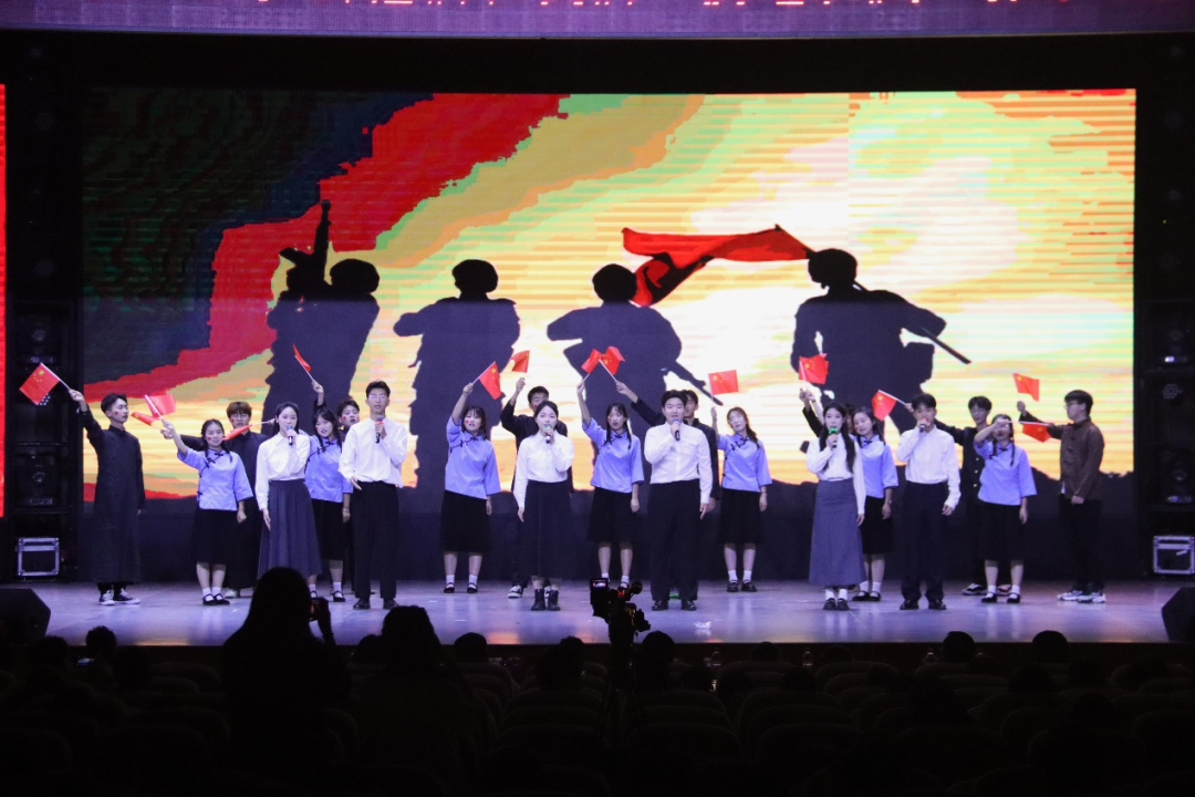 情景剧《敬时代英雄,薪火相传》选取千千万万抗日将士的杰出代表-杨靖宇、赵一曼作为人物原型,再现青年英雄的铮铮铁骨、流血牺牲,展现共产党员的捍卫国家的主权与民族尊严崇高气节。镜头一转,我校的枪王白莎、雪域卫士李星宇、神兵天降张金福胸怀家国天下,在携笔从戎、报效祖国中展现青春的另一种可能。不同的时代,同样的信念,他们都在最好的年华里不愧青春韶华。