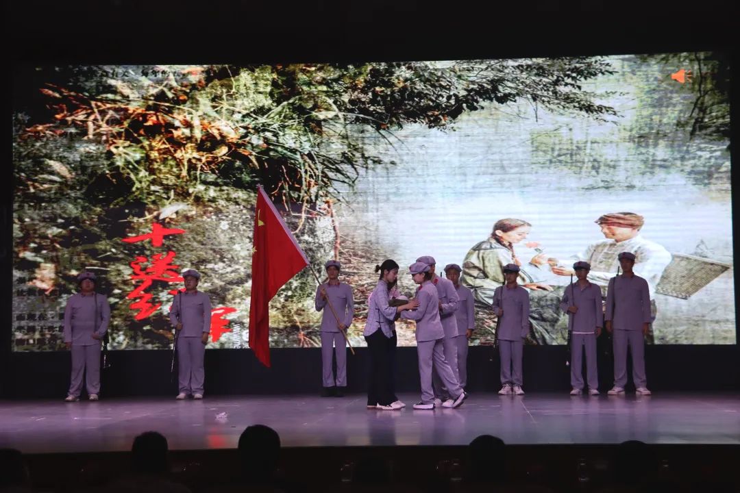 情景剧《一寸山河一寸血》抚今追昔,前有湘江战役“绝命后卫师”陈树湘“断肠明志”的壮烈事迹,后有在校大学生杨梅在部队日复一日的学习与训练中完成了蜕变,他们的青春与党同心,与祖国同行,与人民同在,共同肩负起了振兴中华的历史责任。