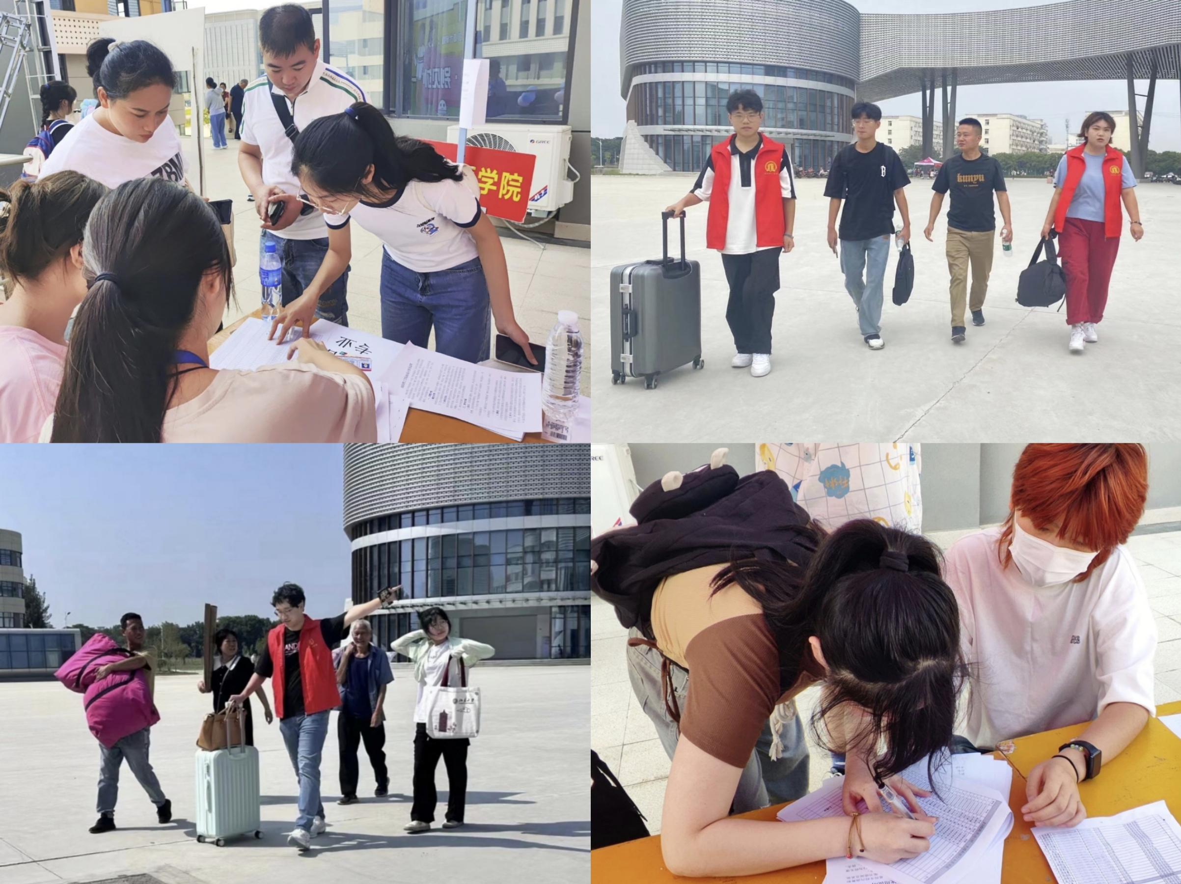 (志愿者帮助新生搬运行李,引导新生完成报到流程,办理相关手续)