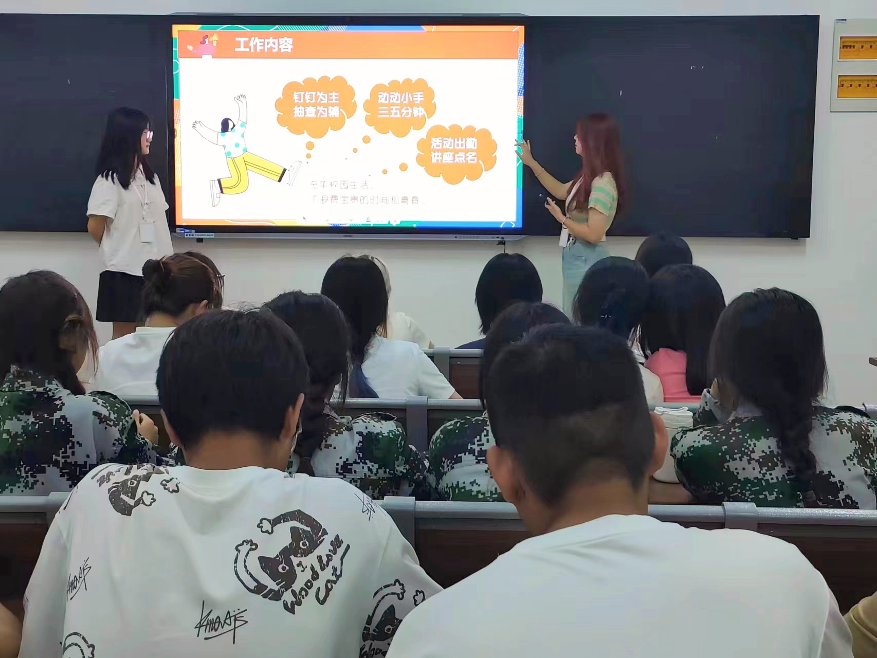 本网讯(通讯员/王舒洁)为给2023级新生创造一个自由发挥的舞台,尽情展示自己的聪明才智,9月17日晚,外国语学院于19号教学楼开展外国语学院自律委员会招新活动,23级全体同学积极参与。
