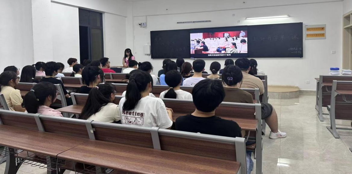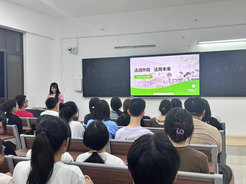 本网讯(通讯员/牛佳欣) 为进一步增强法律意识,提高法治素养,营造知法懂法的良好环境,9月18日,外国语学院于19号教学楼顺利举办“法润外院,法育未来”主题班会。此次班会由陈韩琳主持,外国语学院全体同学积极参加。