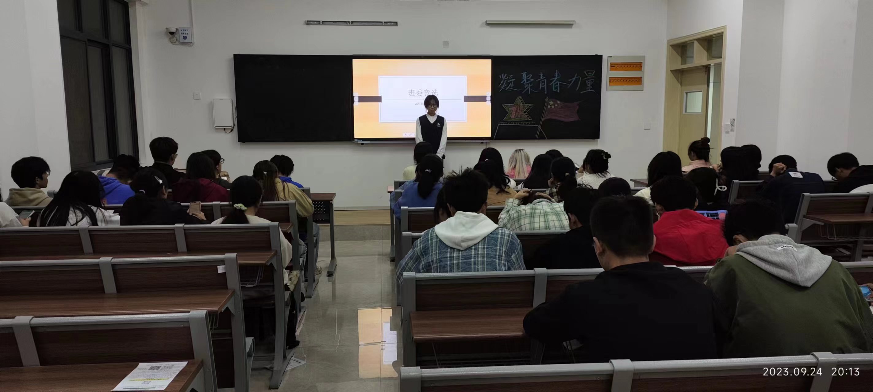 本网讯(通讯员/谢恩惠)为优化班级管理,提高协作能力,本着公平公正,能力优先,民主决策原则,9月27日,南阳理工学院外国语学院于19教组织班委竞选大会,会议由2023级总班代陈韩琳主持,外国语学院2023级全体学生积极参加。