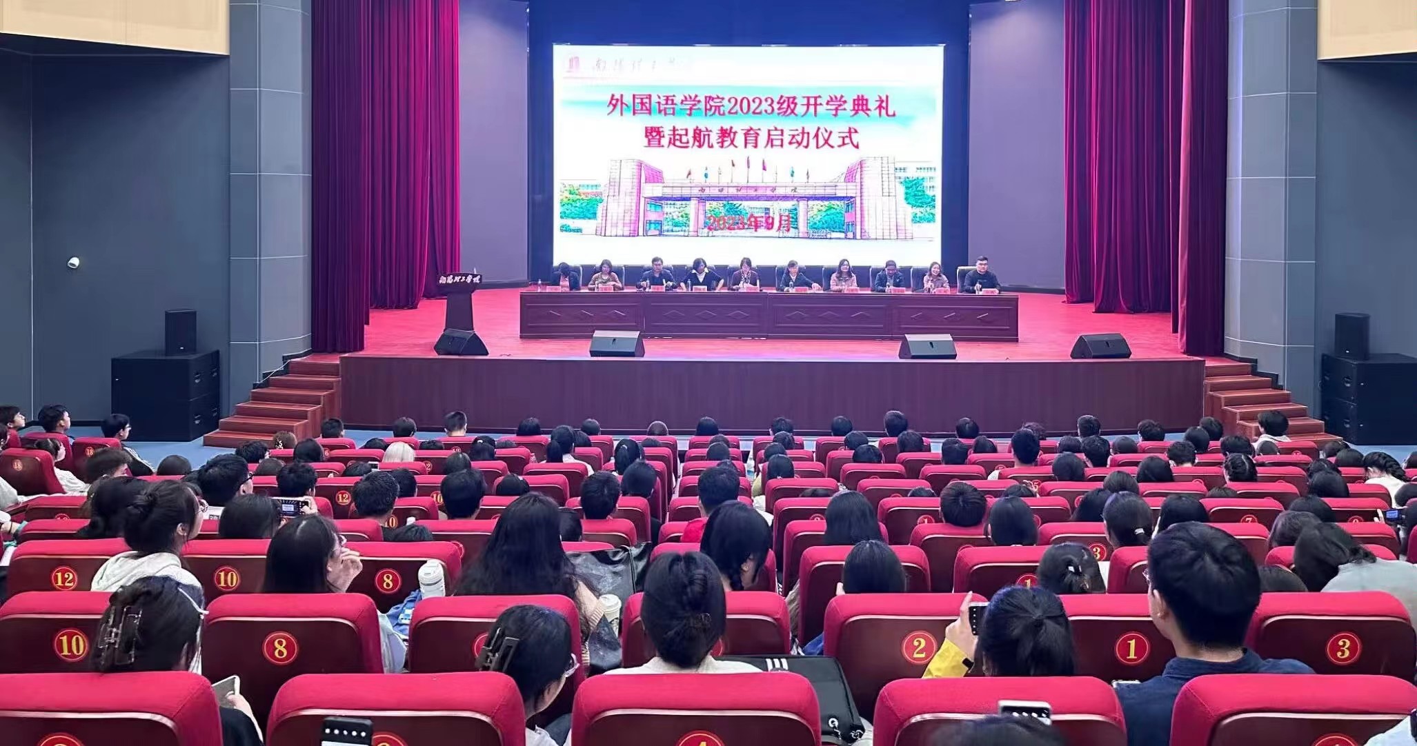 本网讯(特约记者/李鹏飞 通讯员/周迪)9月29日,外国语学院于东校区音乐厅举行2023级新生开学典礼。本次典礼由外国语学院党委副书记李爽正主持,外国语学院领导班子及教师代表出席,2023级全体学生参加。