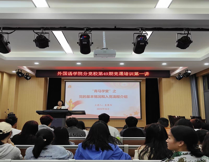 本网讯(通讯员/鞠文姿)为增强入党积极分子对党的基本情况和入党流程的了解,不断强化党性修养,外国语学院青马学堂于10月17日晚在19号教学楼105教室开展第一讲《党的基本情况和入党流程介绍》,由外国语学院党委组织委员来蔓均主讲。