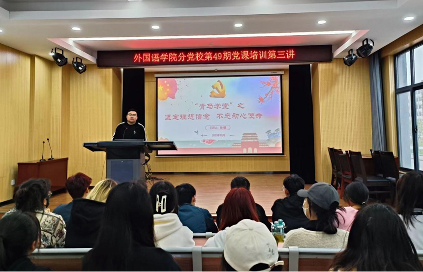 本网讯(通讯员/杨程惠)为培养正确的思想道德观念,提高党性修养,外国语学院青马学堂于10月19日下午在19号教学楼105开展第三讲《坚定理想信念,不忘初心使命》,由外国语学院第一学生党支部书记孙健主讲。