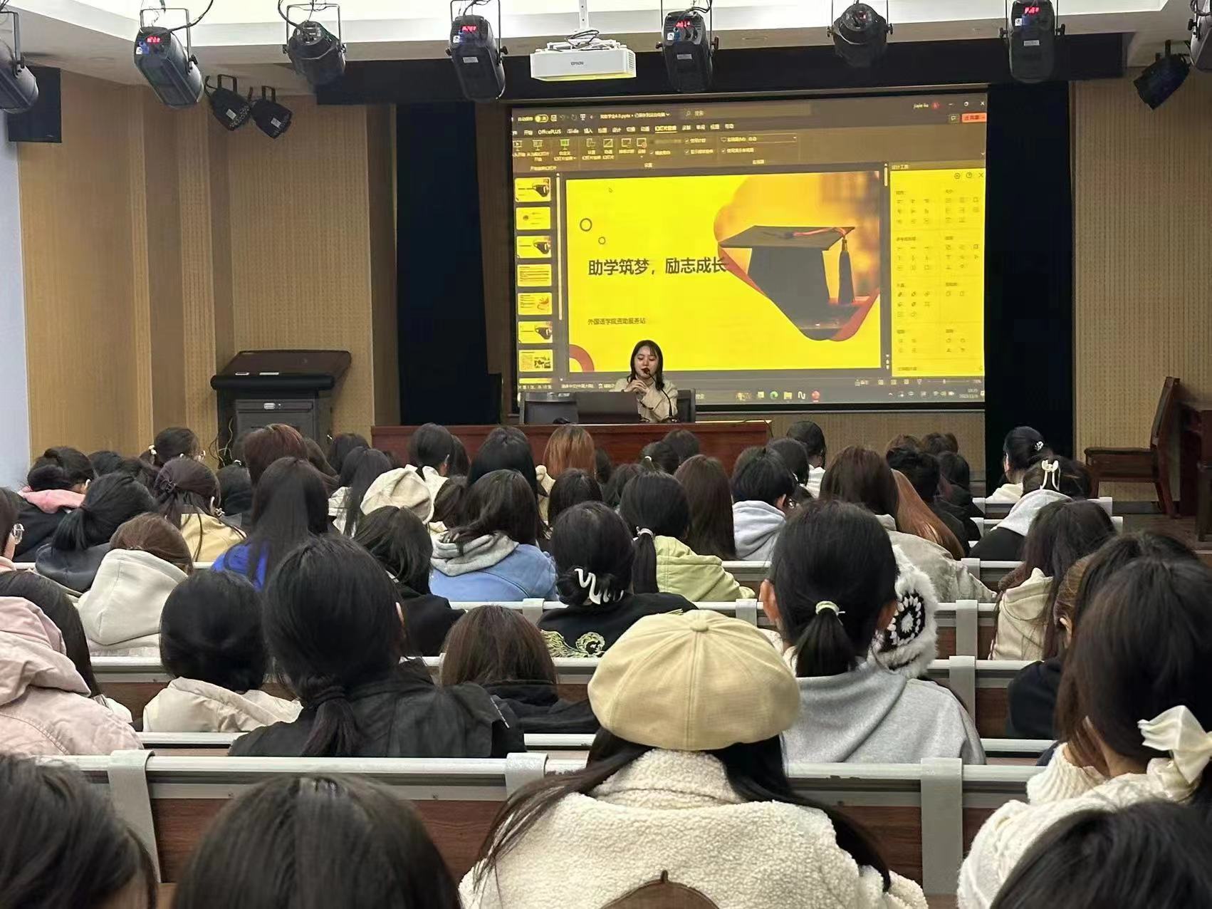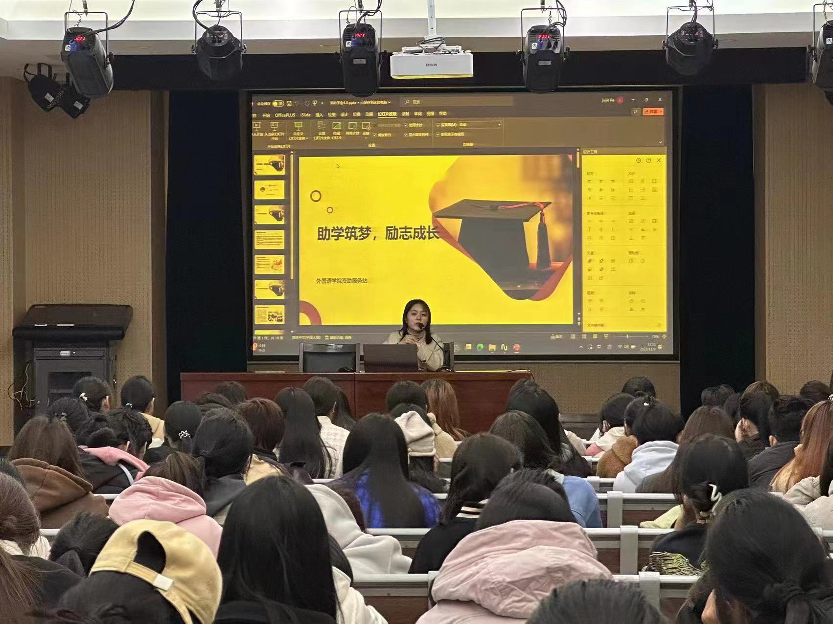 本网讯(通讯员/肖婧宜)为引导学生深入了解国家资助政策和我校学生资助体系,推动我校学生资助工作持续、健康发展,11月9日,外国语学院资助服务站于19105教室举办“助学筑梦,励志成长”资质宣讲活动,本次活动由资助专干尚明萱老师主讲,全体23级新生积极参加。