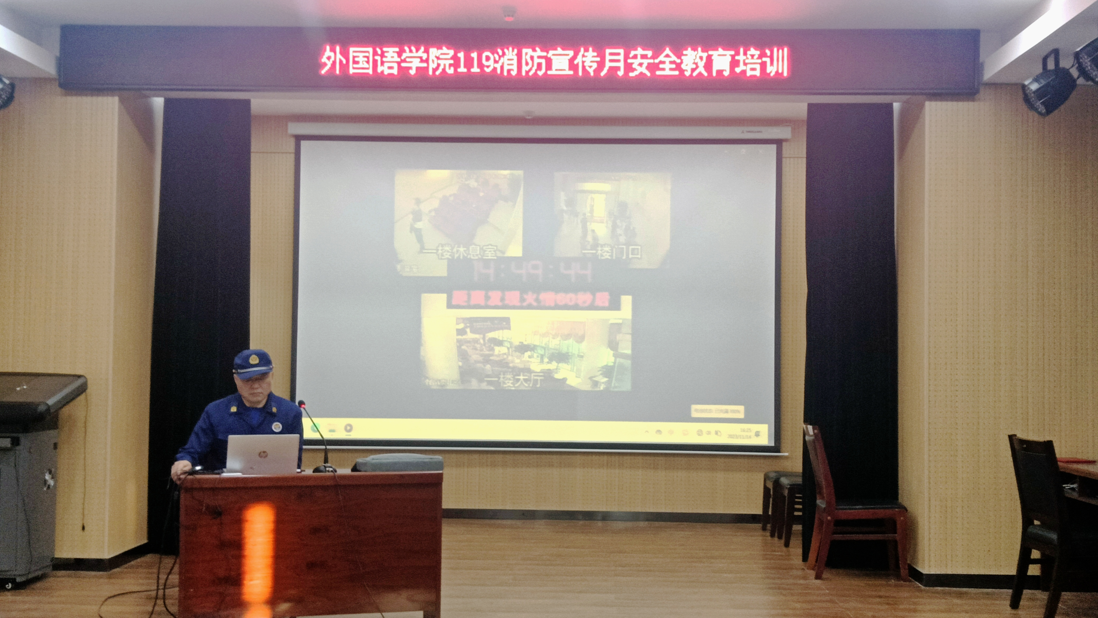 本网讯(通讯员/金韫仪)为提高同学们的消防安全意识,增强同学们的火灾应急逃生能力,11月14日,外国语学院于19号教学楼105室开展“119消防宣传月安全教育”培训讲座,全体同学积极参与。