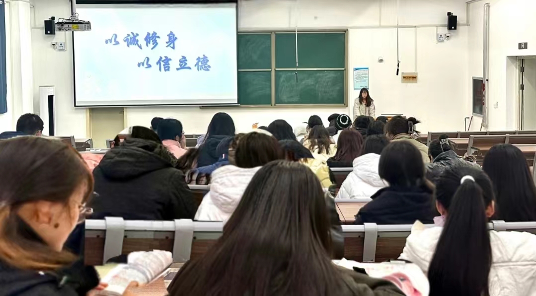 活动伊始,贾琦详细阐述诚实守信是作为自身人格培养的基础和前提,提高诚信意识对同学们个人素养的提升具有重要意义,引导毕业生在平时生活中要重视诚信问题。随后,贾琦从助学贷款偿还、毕业论文及工作交友各方面提出具体要求:一是要及时还款,切勿因小失大,造成失信;二是掌握学术论文写作基本规范和技巧,遵循学术道德规范;三是在实习工作中用诚信来赢得他人的尊重和信任,培养个人职业道德和社会责任感。最后,活动在贾琦对2024届毕业生们真挚的祝福中圆满结束。