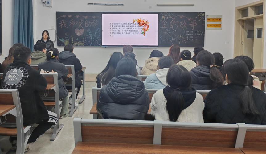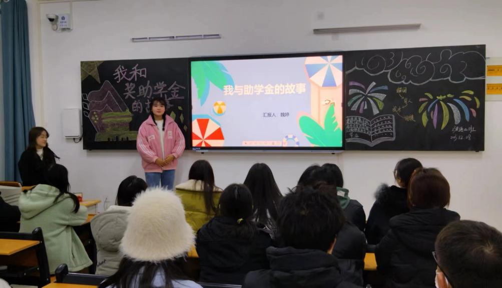班会伊始,各班班长为本班同学讲述了国家奖助学金相关资助政策,并鼓励大家在受到国家资助的同时,要励志感恩,自信自强。接着,各班奖助学金获得者积极上台分享他们与奖助学金的故事。他们分别从自己的学习经历、获奖感受、以及如何面对困难并克服困难等多个角度进行了讲述,这些真实的经历和感受使在场的同学们深受触动,激发了大家对知识的热爱和对未来的憧憬。班会结束后,同学们纷纷表示学习到了许多,以后定会努力学习,为国家,社会和学校做出自身贡献。