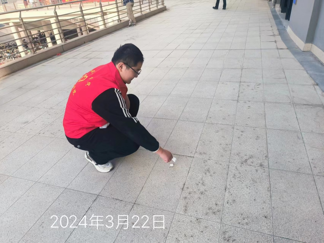 活动前,志愿活动负责人以线上的方式招募志愿者,并向志愿者说明本次活动的注意事项。各志愿者于东校区19号教学楼下集合,负责人将3人分为一个小组进行清扫任务。志愿者们激情昂扬,手拿垃圾袋,对19号教学楼周围及主干道路的垃圾进行清扫。整个过程中,所有志愿者勤勤恳恳、各司其职、团结协作,确保每一个角落干净卫生。最后,在所有志愿者两个小时的共同努力下,东校区19号教学楼楼周围干净整洁、焕然一新。