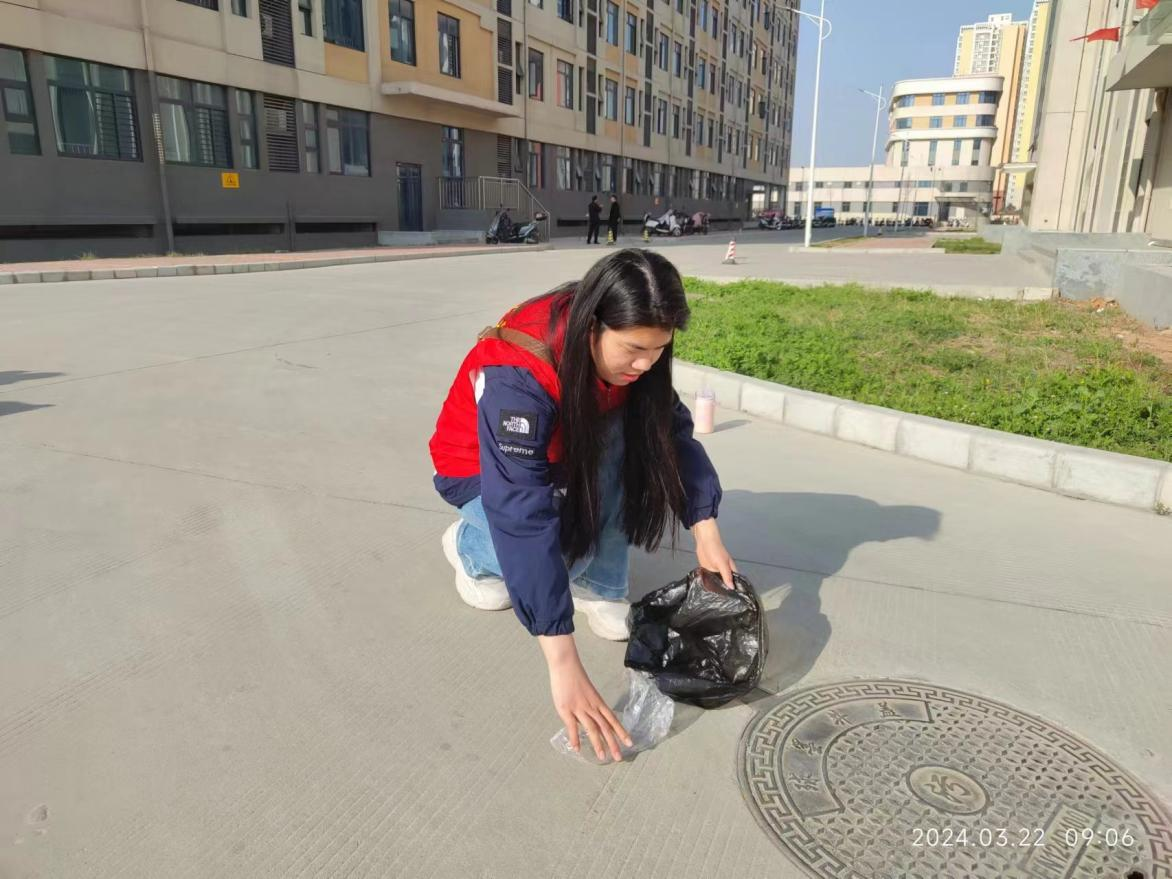 本网讯(通讯员/韩金月)为提升同学们保护环境、爱护环境的意识,增强责任感与奉献精神,创造美丽整洁的校园,呼吁更多人参与到环境保护中去,3月24日,外国语学院于东校区餐厅周围主干道路开展“提升环保意识,追求绿色时尚”校园清洁活动。