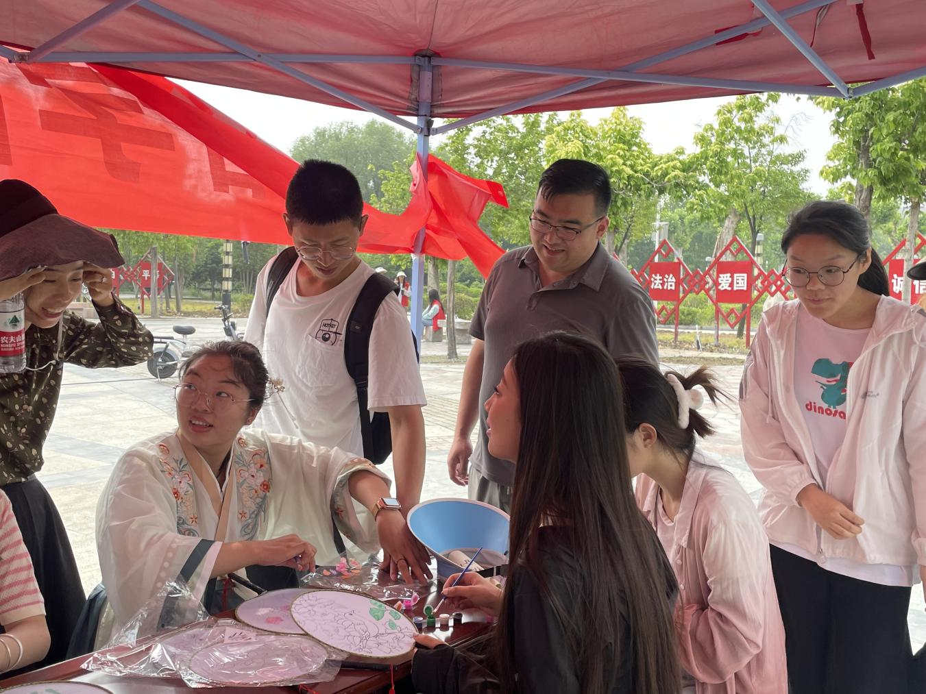本网讯(通讯员/袁义莹)为迎接“525心理健康日”,缓解同学们在学业、生活等方面的压力,提高同学们的心理素质和自助能力,5月25日,外国语学院于齐贤广场举办“妙笔生花,彩绘韶华”美育工坊活动,外国语学院学生积极参加。22级辅导员孙健莅临本次活动现场,并对此次活动进行指导。
