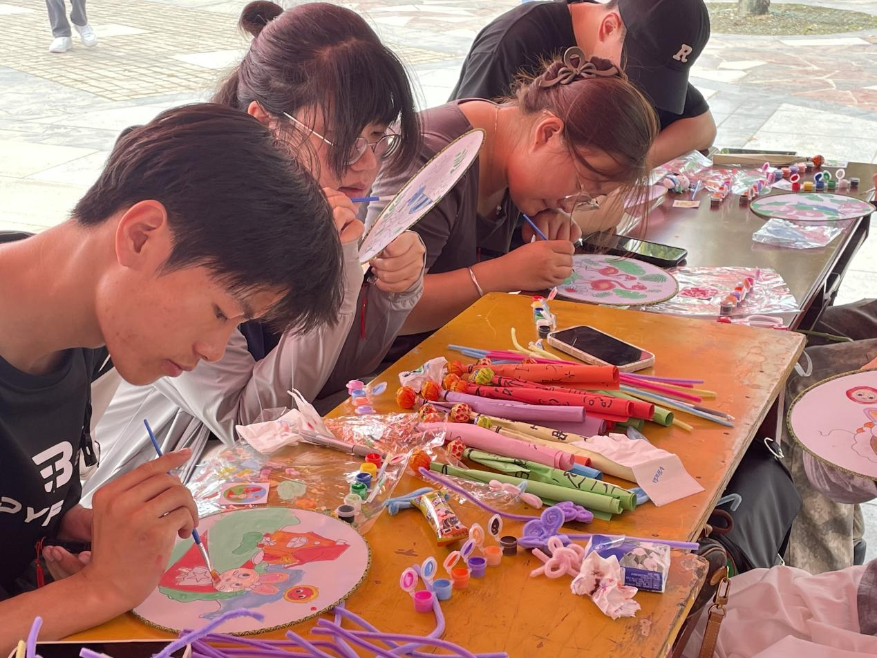 活动开始前,相关工作人员做好充分的活动准备工作:材料购置、样品制作、活动场地布置等;各班负责人发布本次活动的通知,鼓励同学们积极参加。活动开始后,报名活动的同学积极参与,在工作人员的引领下,展开扭扭棒制作、绘制团扇、烦恼换鲜花等美育活动。活动进行的过程中,同学们欣赏到制作精美的扭扭棒花朵,彩扇等样品,并在工作人员和相关视频教程的指导下,发挥自己的创意,制作出了属于自己的作品。孙健老师来到活动现场,与同学们进行了沟通和交流,询问同学们参与本次活动的收获,同学们也向老师展示了自己制作的作品。活动结束后,同学们有序离开,相关工作人员对活动场地打扫整理,并将本次活动用到的桌子、凳子等物品按时归还。本次活动圆满结束。