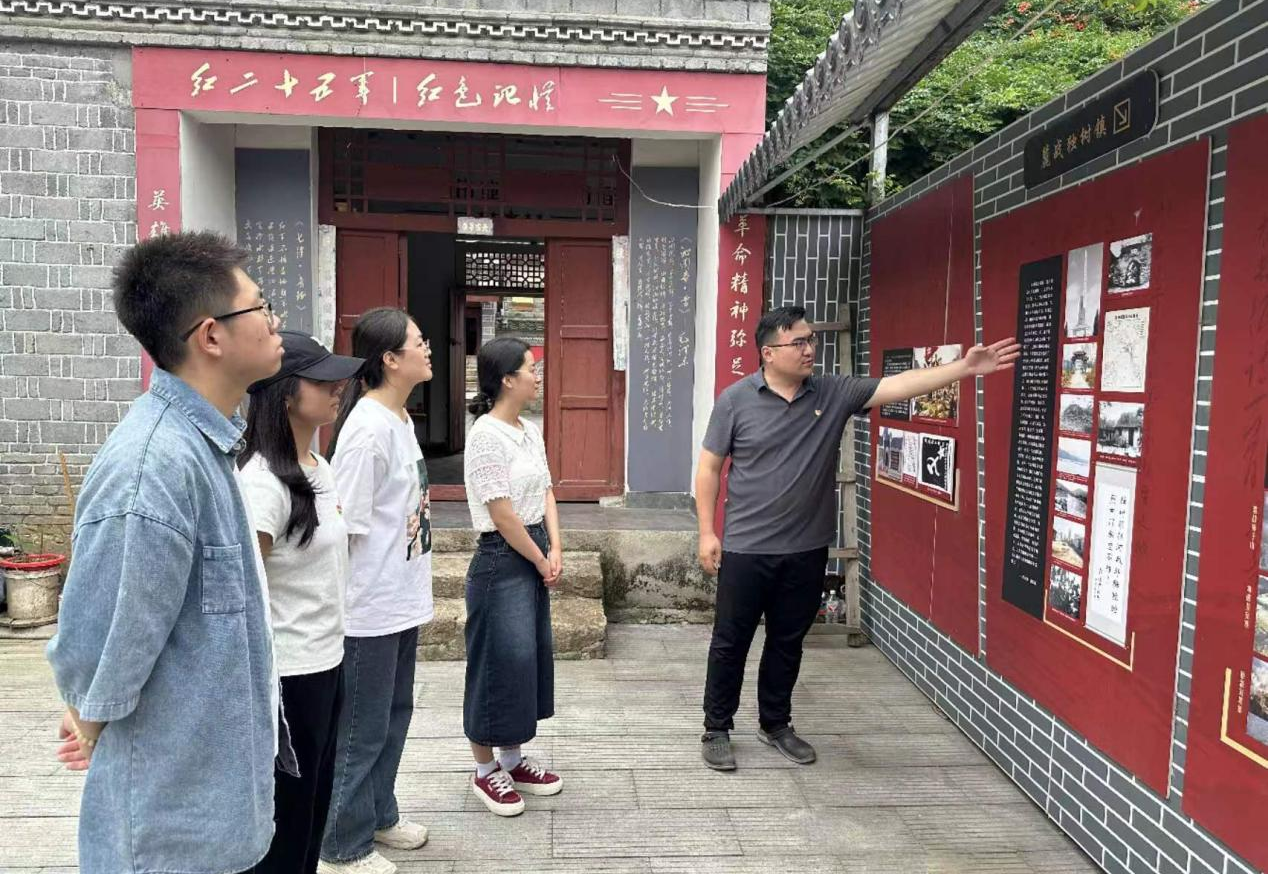 活动开始,在到达了大尖山长征纪念馆后,纪念馆外一堵红墙引人注目,墙上陈列着一张张照片。接着,在孙老师的讲解下,大家了解到了照片背后所代表的历史故事。然后,孙老师又对红二十五军艰苦卓绝的长征历程进行了详细阐述。当时,红二十五军战士在面对敌众我寡、环境极度艰难的条件下,仍与敌人英勇斗争,最终胜利冲出敌人合围,化解危机。通过孙老师的详细讲解,大家纷纷对红二十五军坚强不屈、英勇奋斗的革命精神表达了自己的敬仰。最后,在留存着红二十军红色记忆的遗址里,大家沉思默哀,进一步感受到了革命历史的厚重和深沉,也更加珍惜今天来之不易的美好生活。