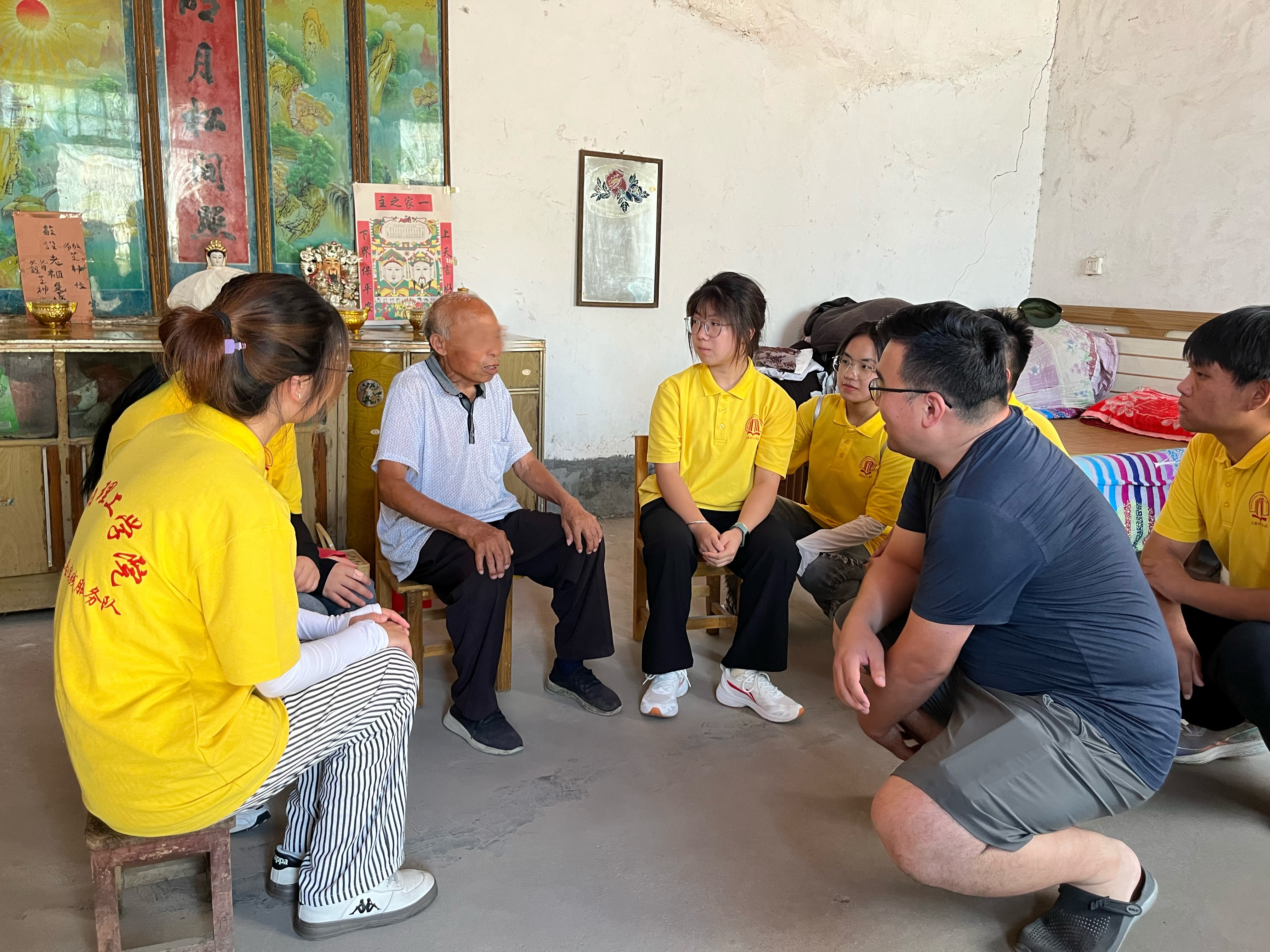 志愿服务队来到平顶山市鲁山县辛集乡白村与当地驻村干部开展座谈会。会上,平顶山市疾控中心驻鲁山县辛集乡白村第一书记李河新向志愿服务队介绍了近几年村内的发展情况,当地村民在驻村干部的带领下开展“家庭式”纺织品加工实现脱贫致富。随后志愿服务队跟随村干部实地学习农耕知识以及了解新型农田灌溉技术等方式,团队成员切实体会到政府各项政策的落实对白村经济、文化等多方面积极影响。