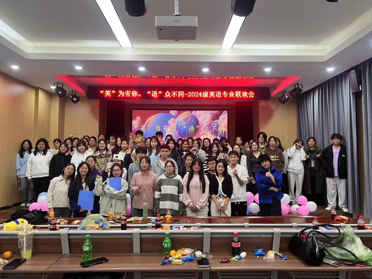 本网讯(通讯员/石了)为点燃同学们对英语的热忱之火,搭建师生深度交流之桥,11月10日,外国语学院英语教研室特于19教105室举办“英”为有你 “语”众不同英语专业联欢会活动,英语教研室教师代表与2023级英语专业学生代表、2024 级英语专业全体学生齐聚一堂,共襄盛举。