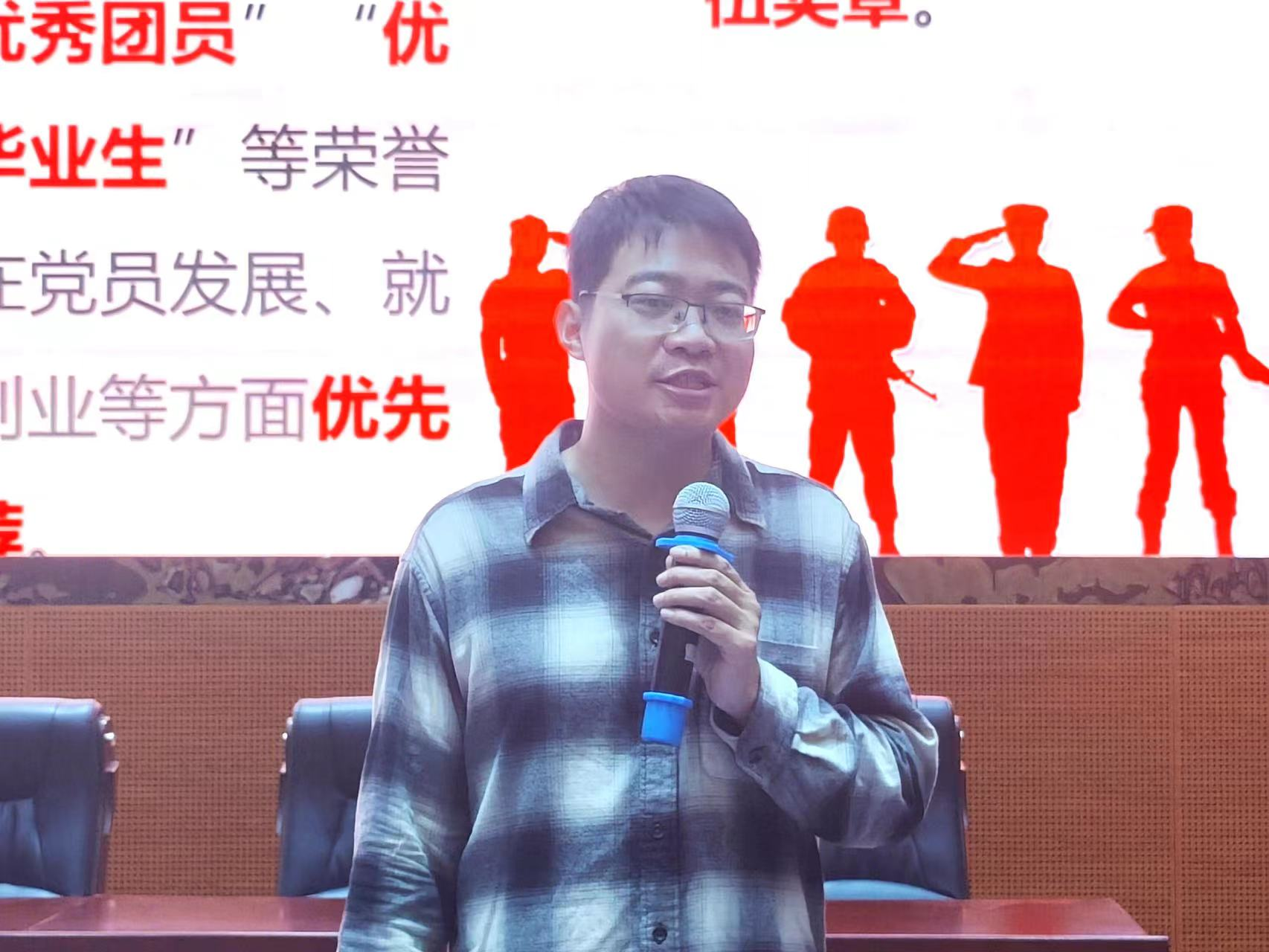 本网讯(通讯员/金韫仪)为激发青年学生的爱国热情,鼓励更多优秀青年投身国防事业,9月18日,外国语学院23级辅导员李鹏飞组织召开了一场征兵宣传讲座,同学们积极参与。
