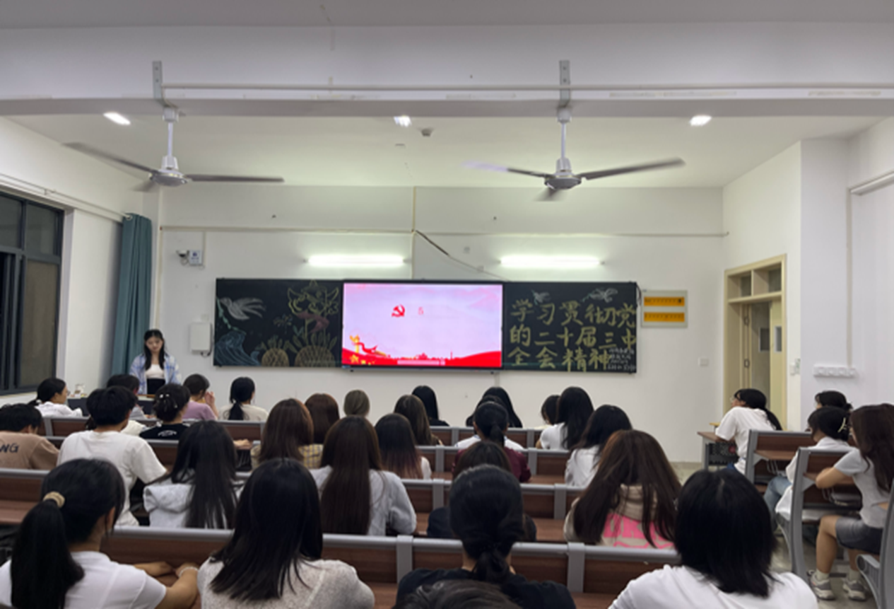 主讲人通过精心制作的ppt和视频向大家展示了二十届三中全会精神的具体内容,并呼吁大家不仅要在本次学习中体会二十届三中全会精神的重大意义,还要落实到具体行动上,与现实生活相融合。主讲人表示,大学生作为新时代的青年力量,更要积极拥抱创新,坚定自己的信仰和追求,把成为有理想,有道德,有文化,有纪律的青年作为奋斗目标。