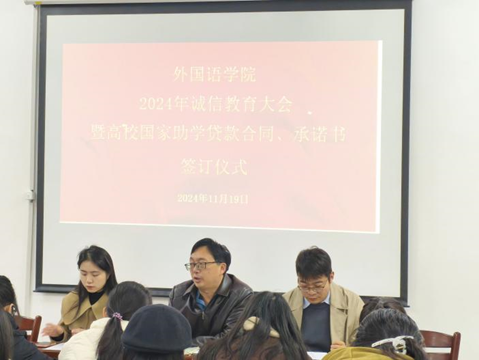 为切实贯彻高校国家助学贷款政策,保障家庭经济困难学生顺利完成学业,同时加强对受助学生的诚信教育和感恩意识培养,推动形成良好的校园资助文化氛围。我院2024年度诚信教育大会暨高校国家助学贷款合同、承诺书签订仪式于11月19日在19号教学楼202教室举行。学院党委副书记李爽正出席,学院资助专干老师尚明萱及办理2024年度高校国家助学贷款的25位学生参加活动。