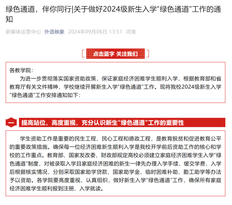通过这样的一站式"绿色通道",不仅让很多没有经济能力入学的同学安心入校,还让同学们感受到学院老师们送来的殷殷关怀。