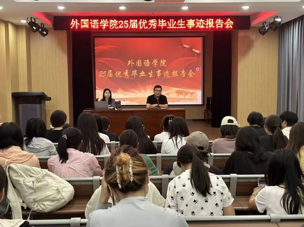 为贯彻落实第四次党代会精神,进一步加强学风建设,5月15日,外国语学院于19号教学楼105会议室开展2025届优秀毕业生事迹报告会。此次分享会由学生工作办公室主任孙健和毕业班老师尚明萱主讲,我院同学积极参与会议。