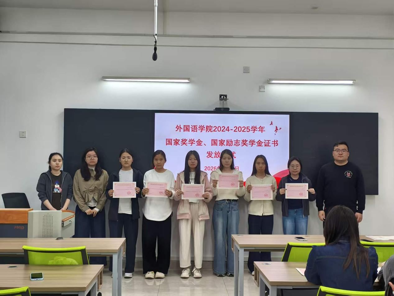 获奖学生依次接过证书,现场掌声不断。大家纷纷表示,未来将以更高标准要求自己,努力成长为兼具专业能力与责任担当的外语人才。此次仪式既是对优秀学子的表彰,也是一次深刻的励志教育,为学院推进资助育人工作、厚植优良学风筑牢了基础。未来,外国语学院将继续深化资助育人工作,助力每一位学子成长成才,为学院高质量发展注入青春动能。(校对/来蔓均 审核/李新宁)