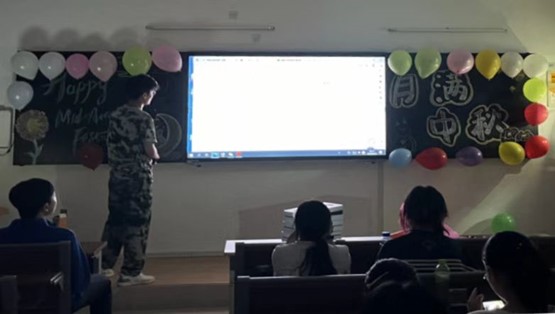 本网讯(通讯员/袁艺菲)为弘扬传统文化,让远离家乡的新生们感受到来自学校的关怀与温暖。9月17日,外国语学院于19教各行政班举办欢庆中秋活动。24级辅导员贾琦老师问候各班。