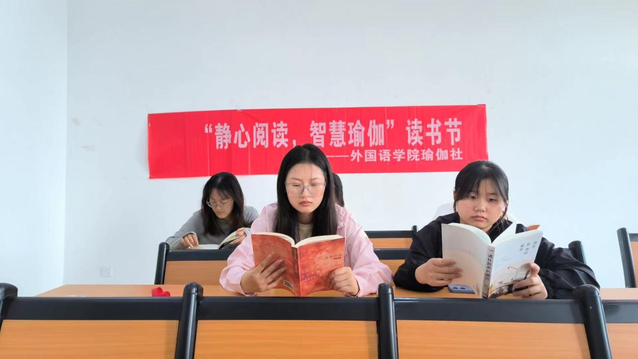 本网讯(通讯员/赵鸿图)为进一步营造“多读书、好读书、读好书”的浓厚读书氛围,全面提升学生阅读素养,助力“书香校园”建设,4月27日,外国语学院爱摄影社团与Yu见瑜伽社于19教502室举行“以书为友--猜猜作品名”和“静心阅读,智慧瑜伽”活动。